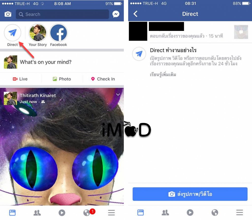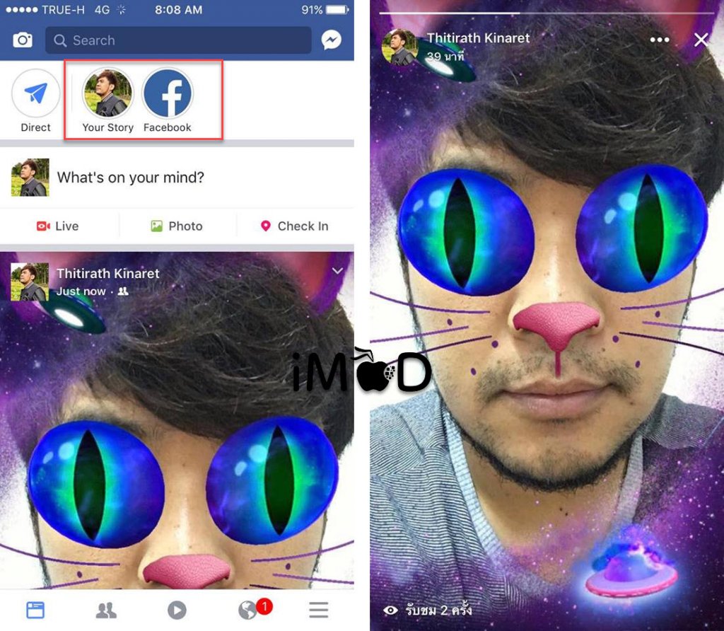 ก่อนหน้านี้ Facebook ได้ปล่อยคุณสมบัติ Story ในแอป Facebook ให้กับผู้ใช้บางกลุ่ม ล่าสุดคุณสมบัติ เอฟเฟกซ์กล้อง, แชร์ Story และ Direct คอมเม้นส่งข้อความ ถูกเปิดให้ใช้งานผ่านแอป Facebook แล้ว