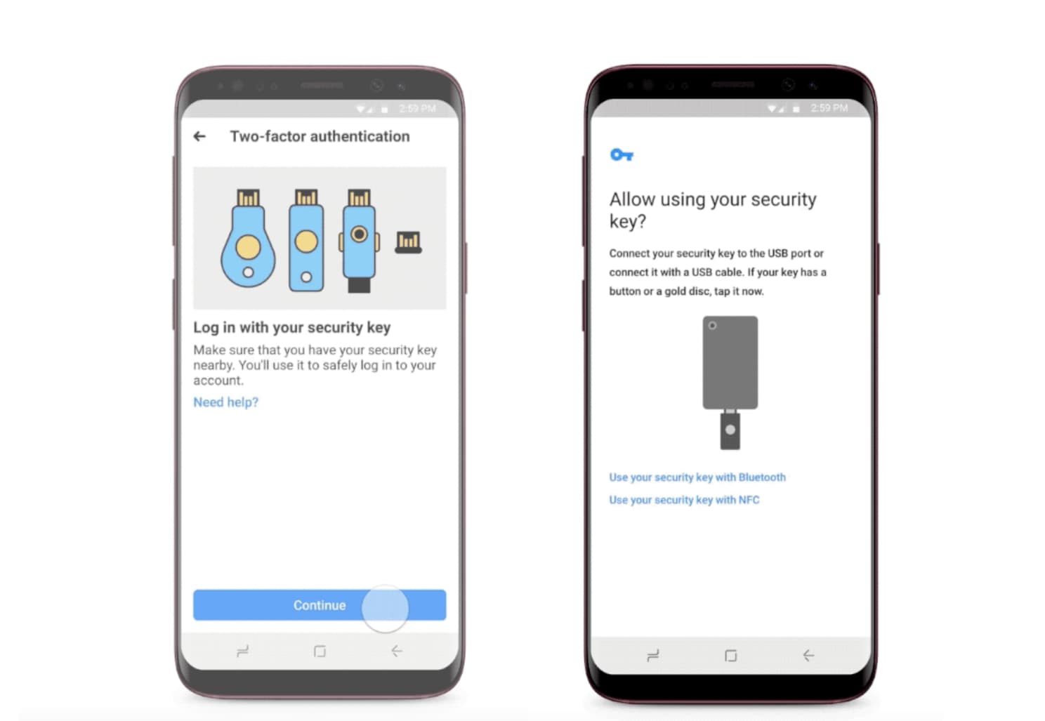 Facebook ได้ประกาศว่าผู้ใช้บน iOS และ Android จะสามารถลงชื่อเข้าใช้บัญชี Facebook ของตนด้วยการยืนยันตัวตนแบบสองปัจจัยโดยใช้คีย์ความปลอดภัยผ่านฮาร์ดแวร์ที่มีลักษณะเป็น USB
