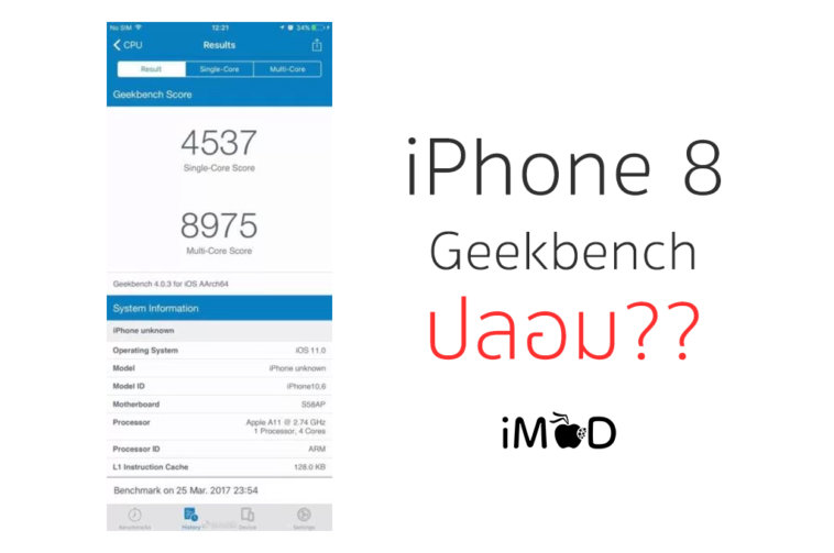 ก่อนหน้านี้มีภาพหลุด Screenshot ผลทดสอบ Geekbench ของ iPhone 8 ที่เผยแพร่ให้เห็นตามสื่อต่างๆ ล่าสุดสื่อต่างประเทศวิเคราะห์ว่า อาจเป็นภาพปลอม