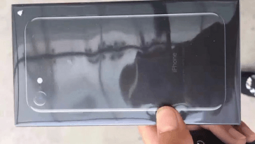 เจ้าของ iPhone 7 สี Jet Black รายหนึ่งได้สังเกตเห็นตัวอักษรลอกมากับฟิล์มหลัง ตั้งแต่คำว่า “Designed by Apple in California” รวมถึงส่วนอื่นทั้งหมด เมื่อทำการลอกฟิล์มออกจากเครื่องผ่านการมองลอดแสงไฟ