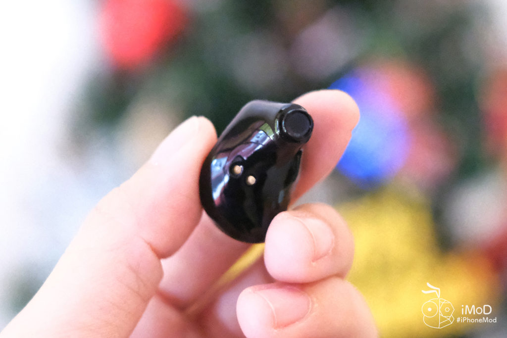 ด้านในของหูจะเป็นสีดำล้วนมีส่วนที่ใช้ฟังจะยื่นออกมาเล็กน้อย สำหรับใส่จุกหูฟังและสวมใส่เข้าไปในรูหูแบบ In-Ear ส่วนจุดสีทอง 2 จุดจะเป็นส่วนที่ยึดกับแม่เหล็กในเคสชาร์จ