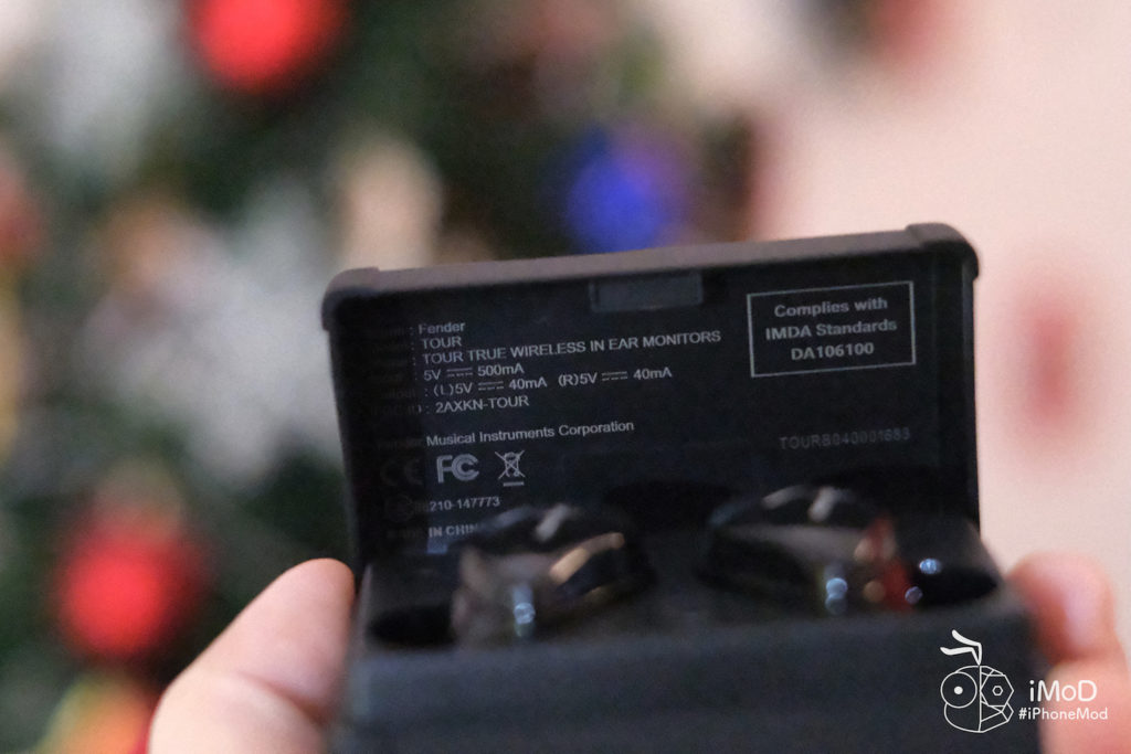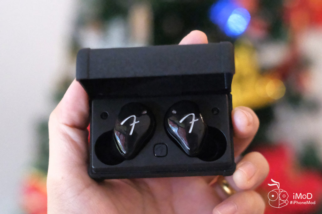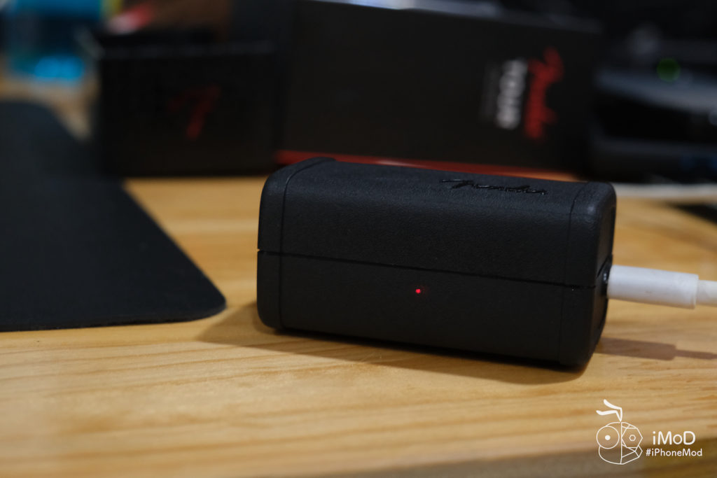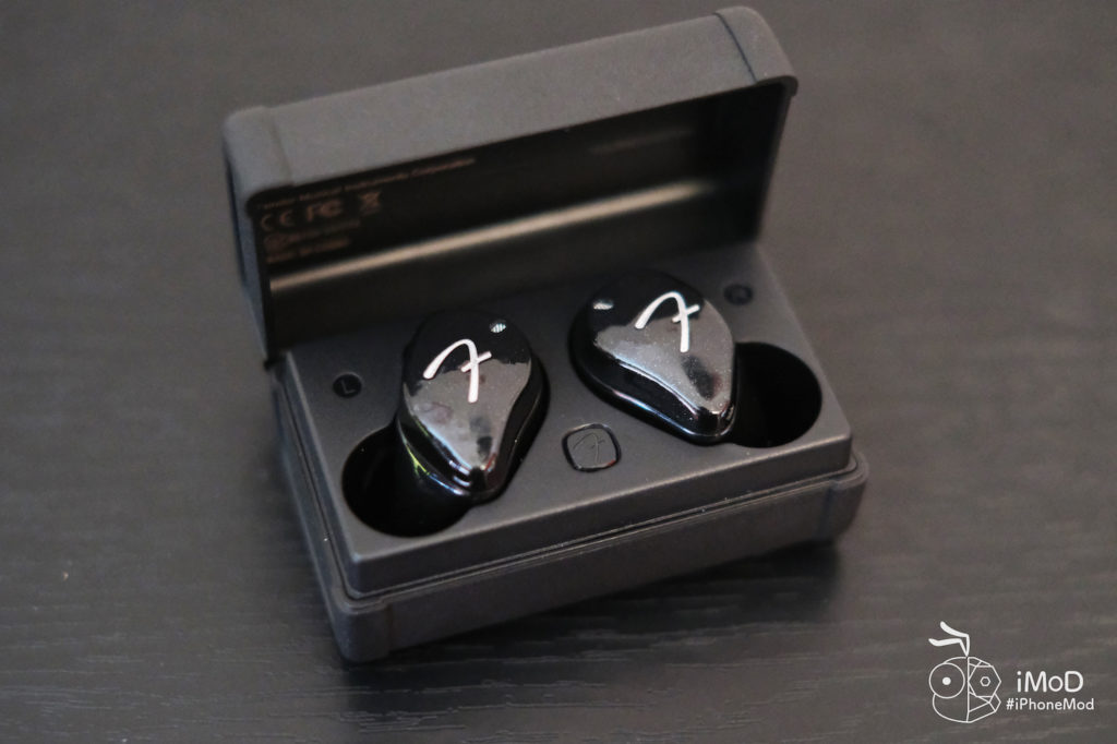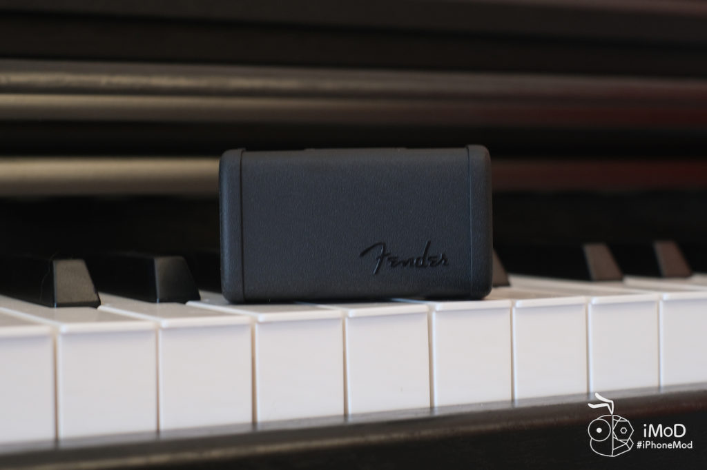 ส่วนของเคสชาร์จหูฟังจะเป็นกล่องสี่เหลี่ยมขนาดไม่ใหญ่มากนัก ทำหน้าที่ชาร์จหูฟังได้อย่างมีประสิทธิภาพ เนื่องจากมีแม่เหล็กยึดหูฟังเอาไว้ขณะชาร์จ การออกแบบลายของเคสนั้นได้รับแรงบันดาลใจมาจากเคสใส่กีต้าร์ Fender ซึ่งเป็นลายและวัสดุเดียวกัน หูฟังทำโดย 3D Printing ให้ความเป็น Fender อย่างแท้จริง