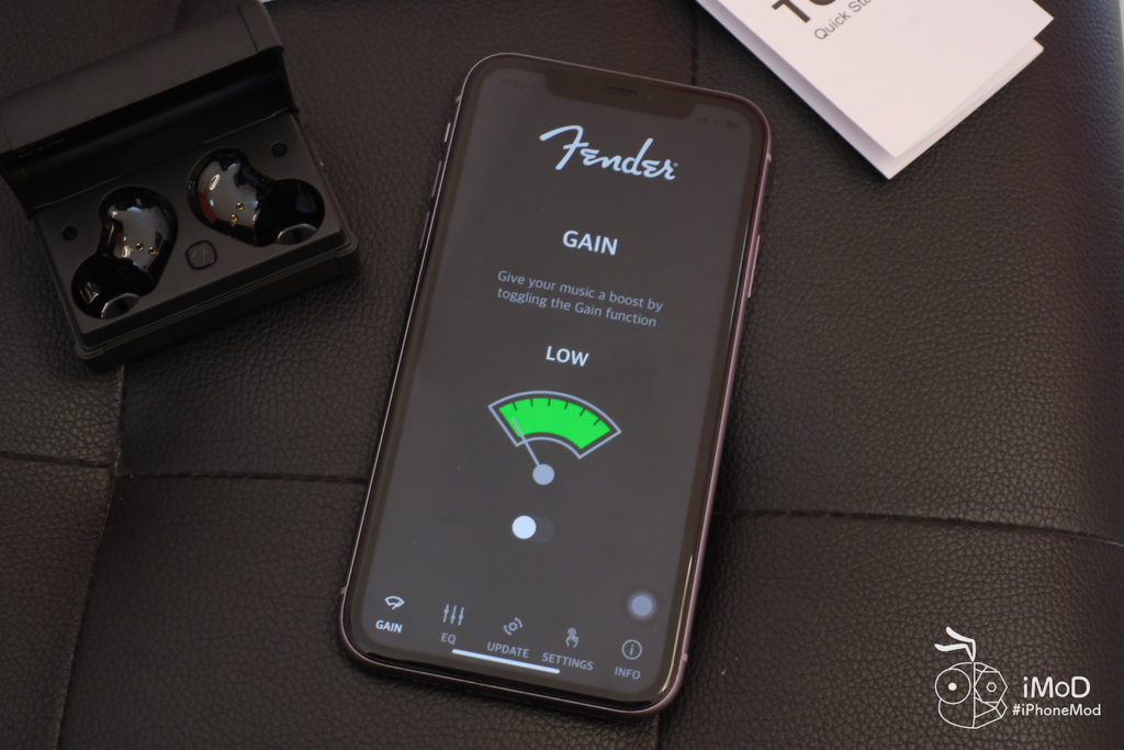 ทาง Fender ยังมีแอปสำหรับหูฟัง Fender TOUR โดยเฉพาะ รองรับทั้งบน iOS และ Android ให้ผู้ใช้ได้ปรับความคมชัดและความครบของเสียงได้ ด้วยการเปิด GAIN แต่ถ้าอยากจะประหยัดแบตก็ปิดฟังก์ชันนี้ไว้ได้ แต่คุณภาพเสียงก็อาจจะลดลง