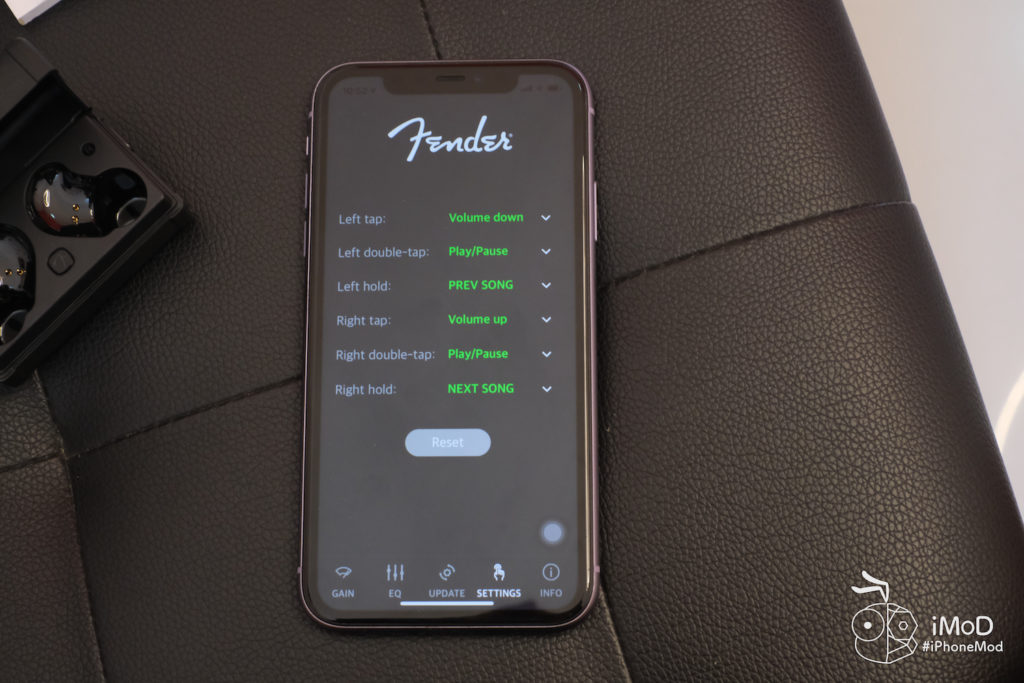 ภายในแอป Fender TOUR จะมีเมนู Setting ให้เราได้ปรับแต่งคำสั่งการแตะสัมผัสหูฟัง เริ่มตั้งแต่การแตะหูฟังครั้งเดียว, การแตะหูฟัง 2 ครั้ง และการแตะหูฟังค้างไว้ เราก็เลือกคำสั่งที่ต้องการและสอดคล้องกับการใช้งานของเรา