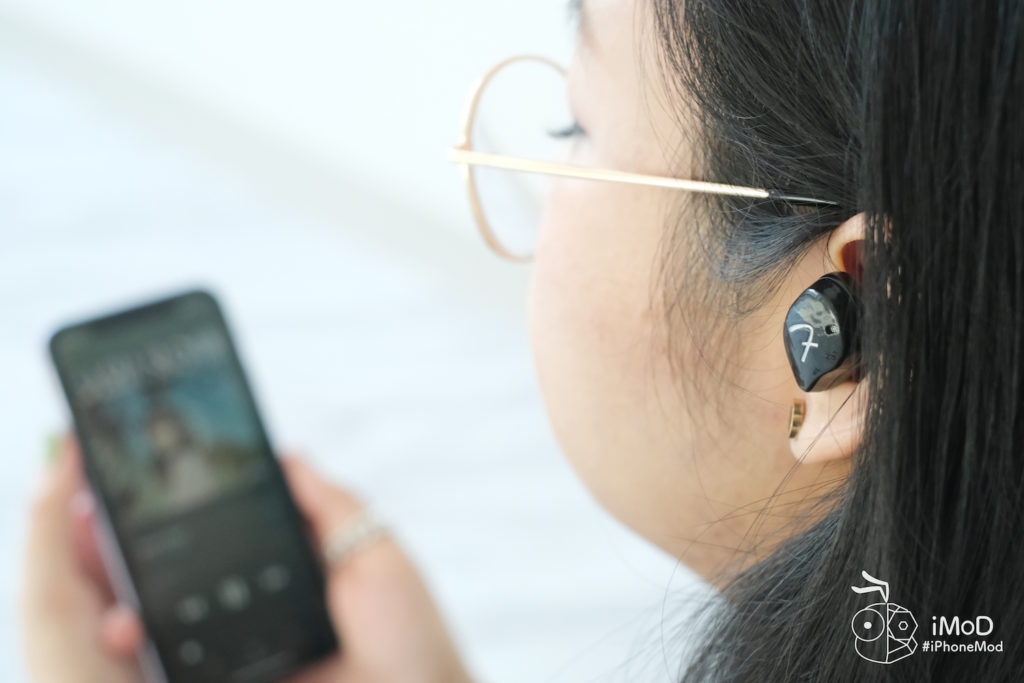 การสวมใส่ก็ง่าย ๆ เพียงแค่สอดส่วนของจุกหูฟังเข้าไปในหู โดยให้โลโก้ตัว F แสดงตั้งให้ถูกต้อง เห็นได้ว่าหูฟังจะแนบไปตามสรีระของหูพอดี ช่วยให้การสวมใส่รู้สึกสบายและไม่หลุดง่าย