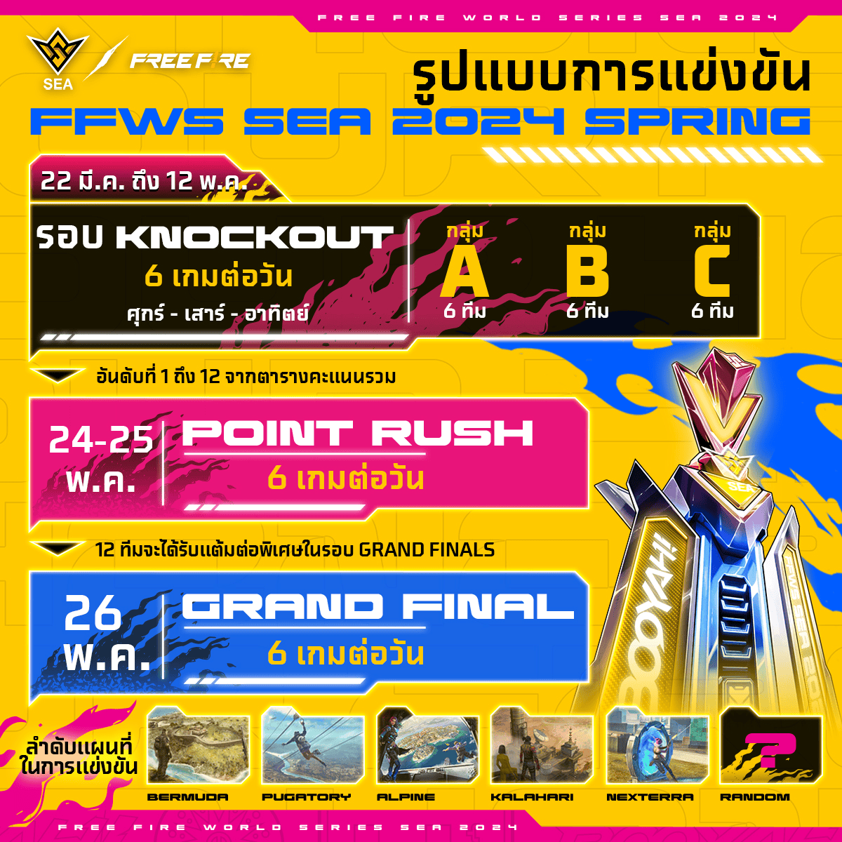 เตรียมมัน! กับแมตช์การแข่งขัน Free Fire World Series Southeast Asia (FFWS SEA) 2024 Spring ปักหมุดรอบแรกวันที่ 22 มี.ค. 67 นี้