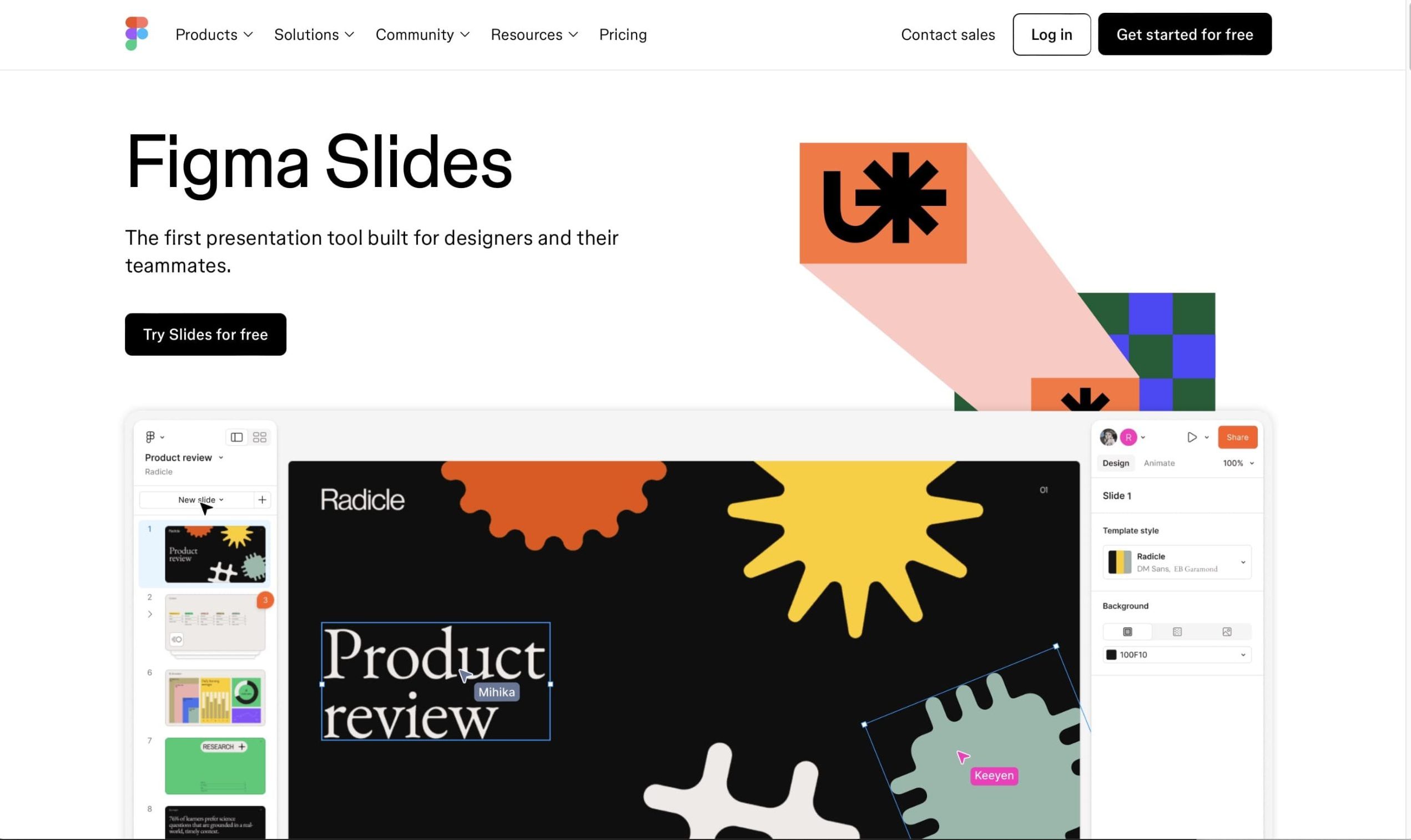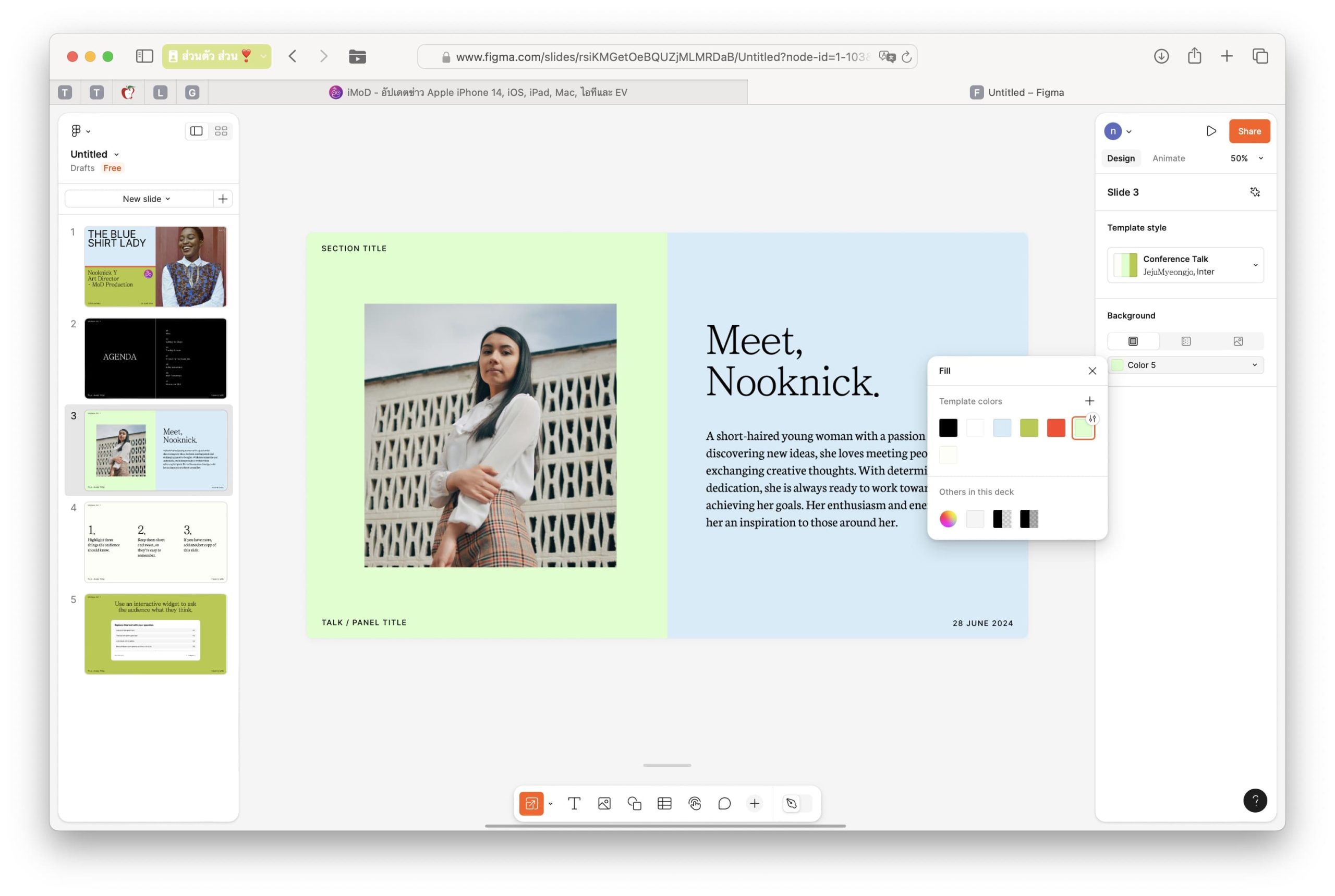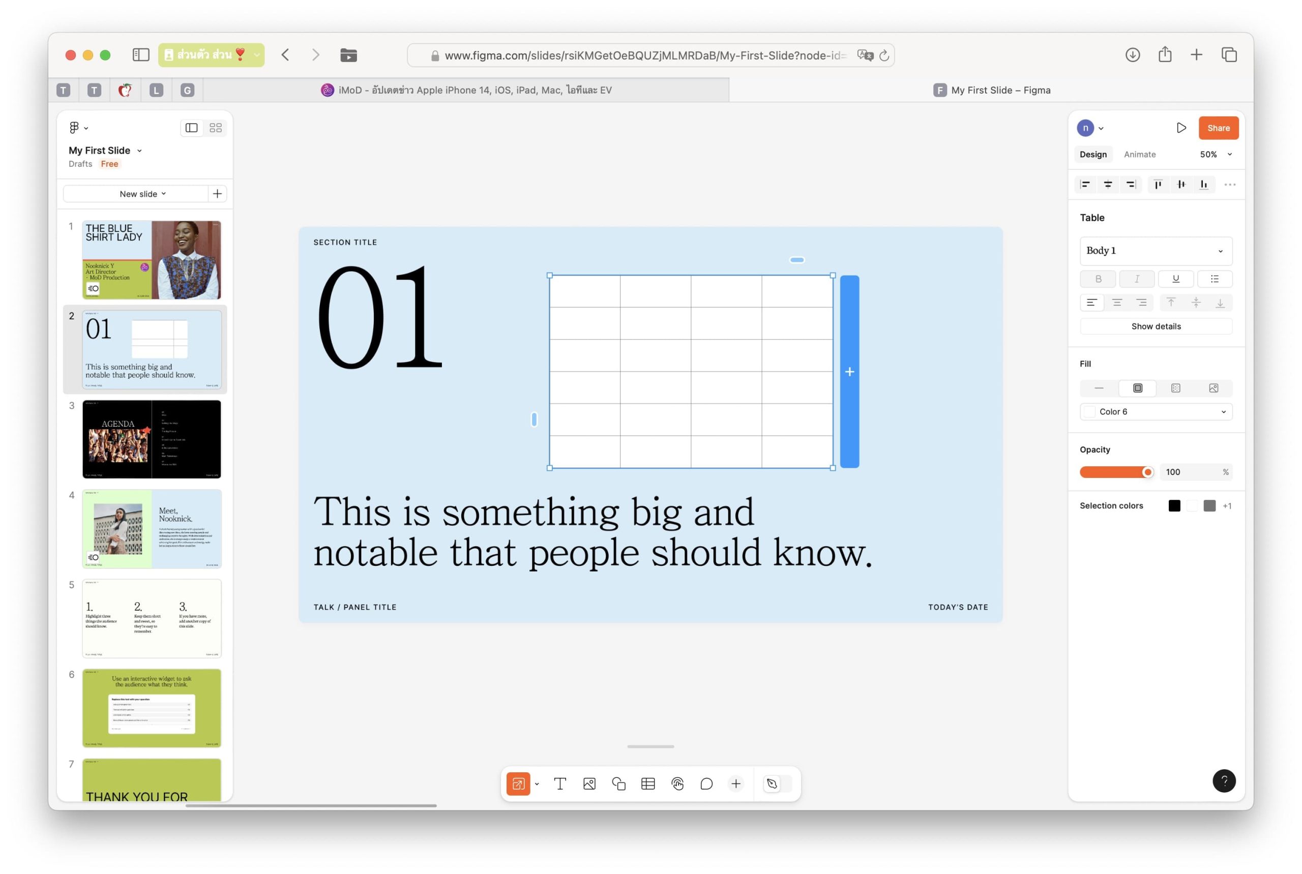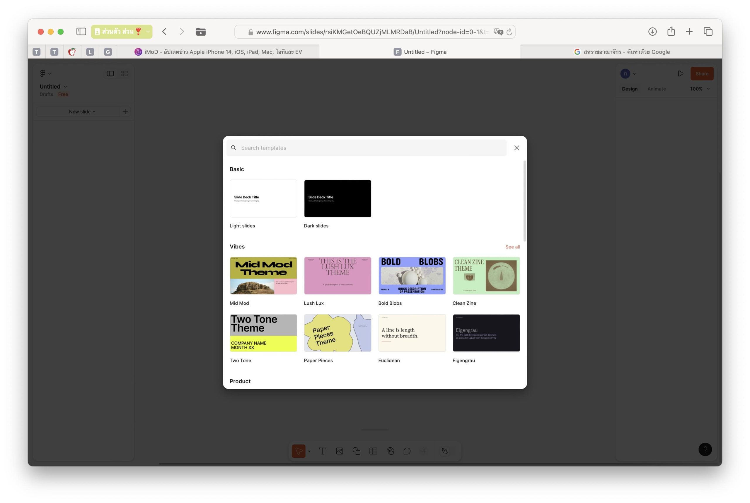 ลองใช้งาน Sigma Slide: https://www.figma.com/slides/ (ใช้ฟรีแบบจำกัด ภายในปี 2024)