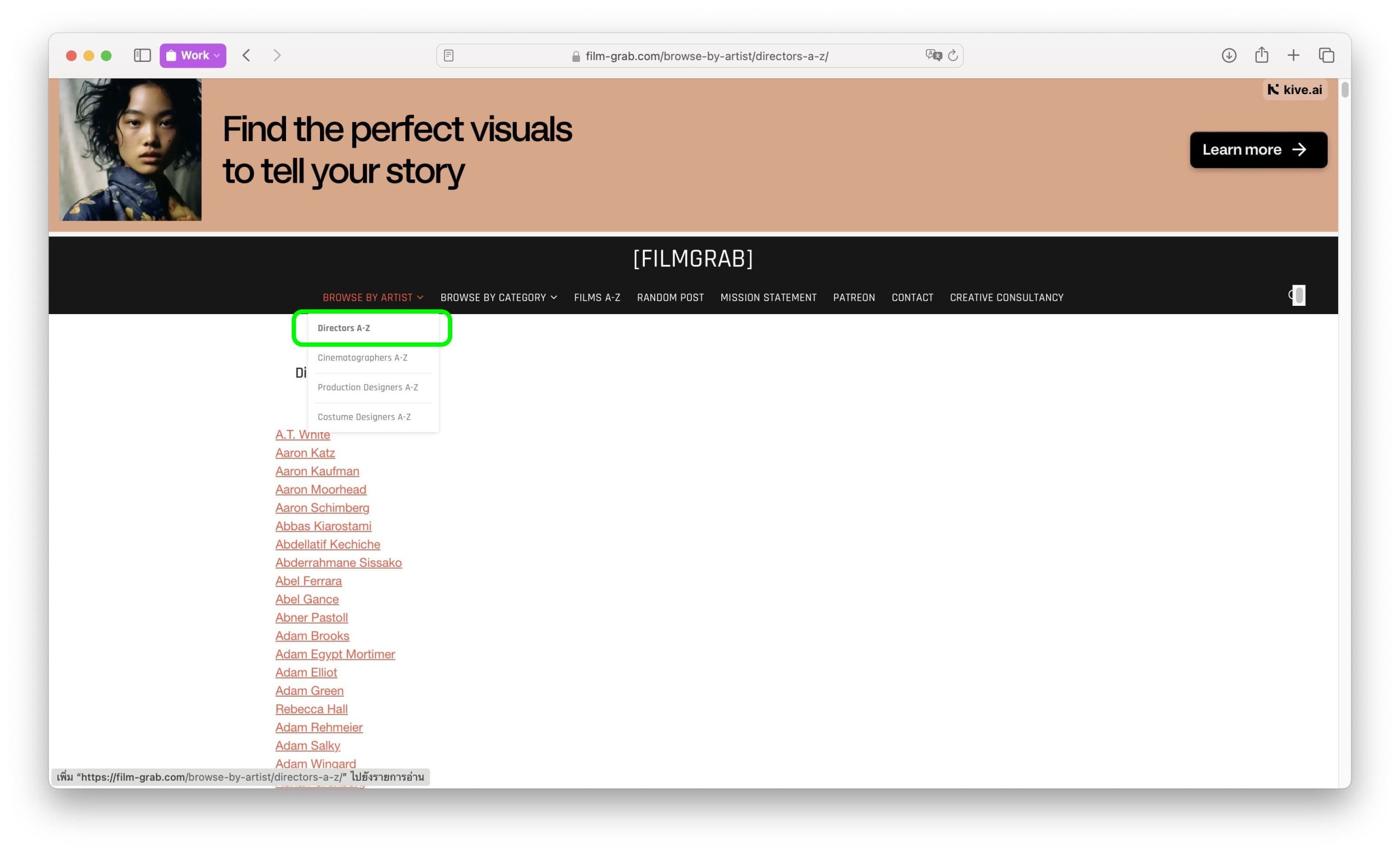 พามาดูเมนูที่มีให้ใช้งานกันหน่อย เราสามารถเลือกดูฉากจากหนังต่าง ๆ ได้ตามชื่อผู้กำกับ เรียงให้จาก A-Z