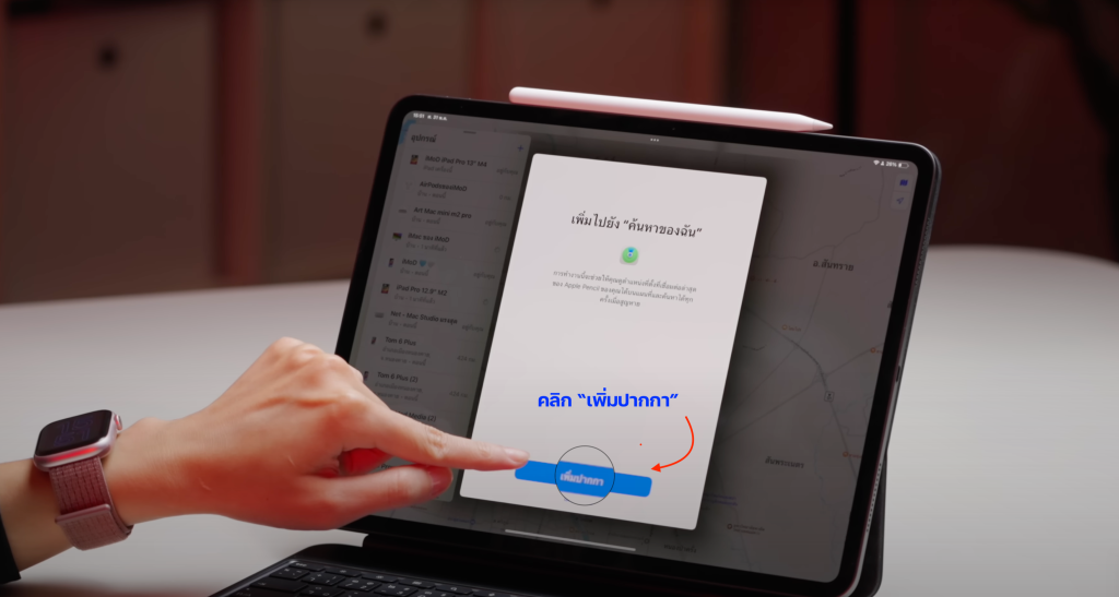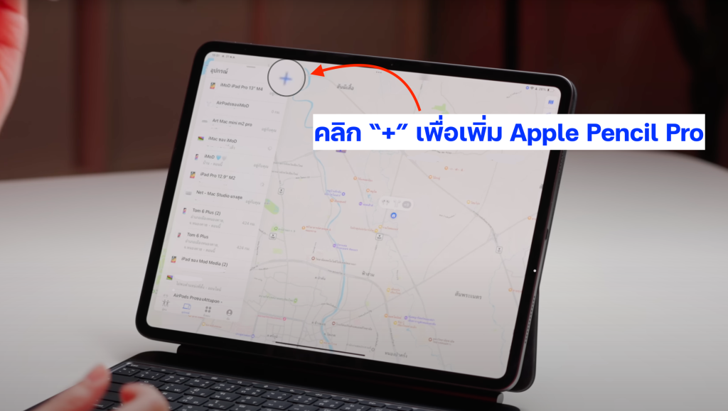 เปิดแอป “Find My (ค้นหาของฉัน)” บน iPad > คลิกไปที่ “+” > จากนั้นกดที่ เพิ่ม “Apple Pencil Pro”