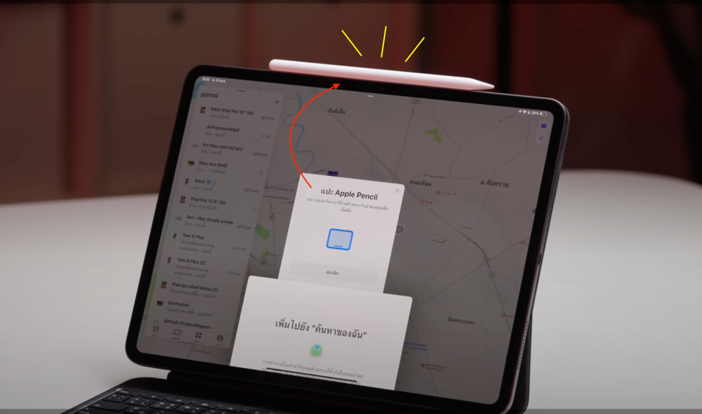 นำ Apple Pencil Pro แปะไปด้านข้างของ iPad จากนั้นจะมีหน้าต่าง เพิ่มไปยัง “ค้นหาของฉัน” เด้งขึ้นมา