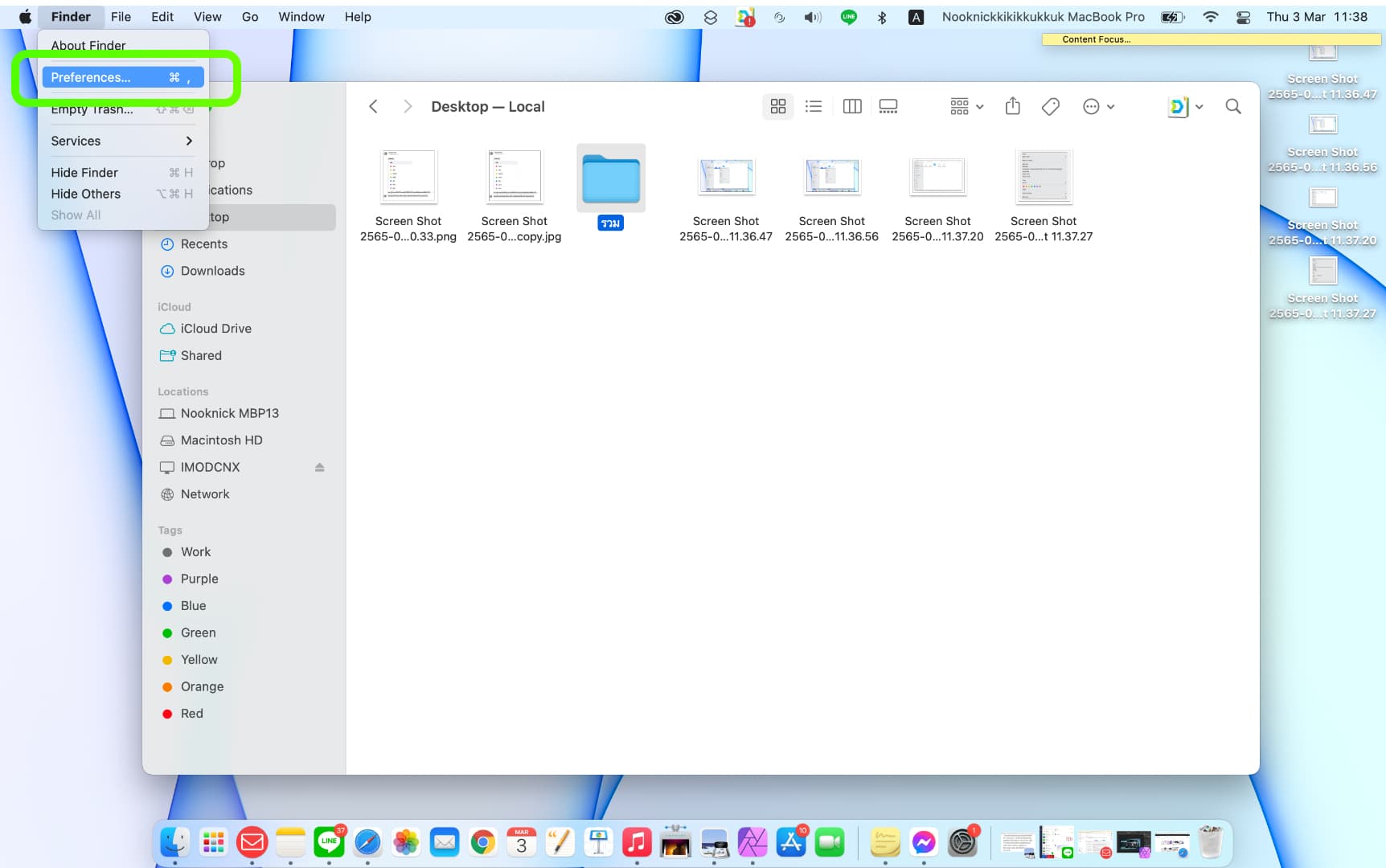 เปิดแอป Finder ขึ้นมา ที่มุมบนซ้ายให้แตะที่ “Finder” > แตะที่เมนู Preferences…