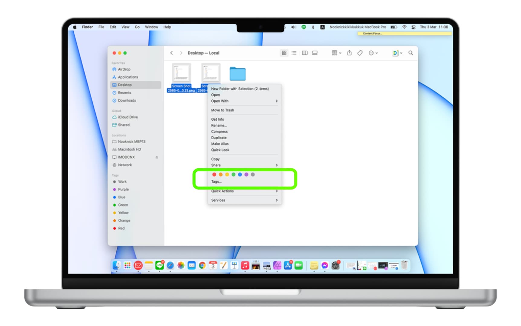 เมื่อเราคลิกขวาที่ไฟล์หรือโฟล์เดอร์ต่าง ๆ ในแอป Finder เราอาจจะคุ้นเคยกับเมนูแท็กที่เป็นสีต่าง ๆ ประโยชน์ของฟีเจอร์นี้ก็คือ เอาไว้ใช้แยกกลุ่ม แยกประเภทของไฟล์ในแบบของเราเอง บางคนที่มีไฟล์หรือโฟล์เดอร์ในเครื่องเยอะ ๆ อาจจะใช้แท็กสีในการจัดหมวดหมู่ของไฟล์เพื่อให้ตัวเองค้นหาไฟล์ได้ง่ายขึ้น