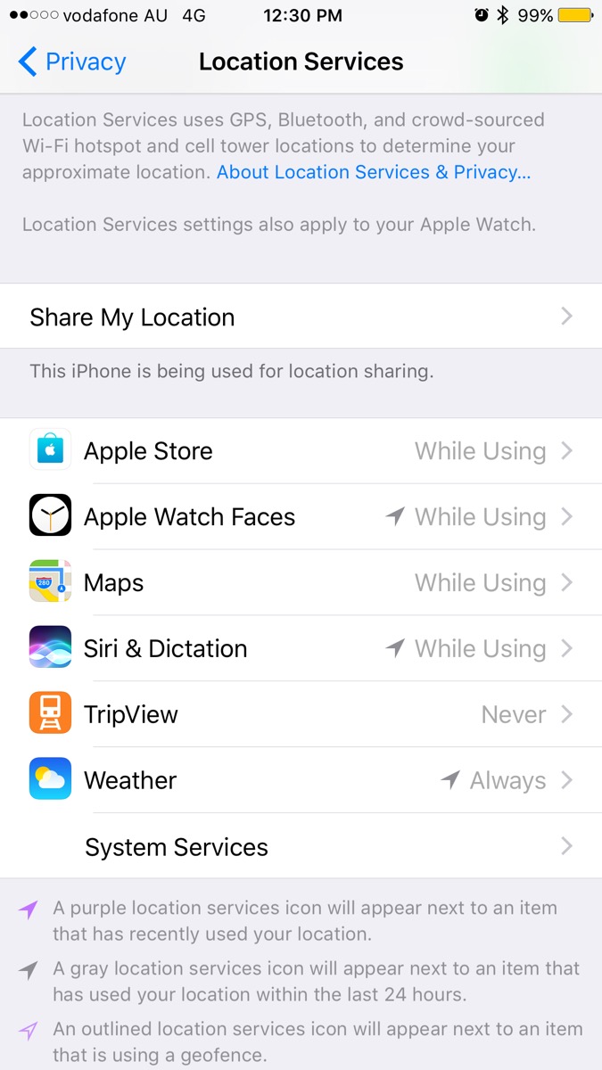 ไอเดียคือ แอปไหนไม่จำเป็นต้องใช้บริการนี้ให้เลือกเป็น Never (ไม่เลย) ส่วนแอปไหนที่จำเป็นต้องใช้การค้นหาตำแหน่งให้เลือกเป็น While Using (ขณะใช้)