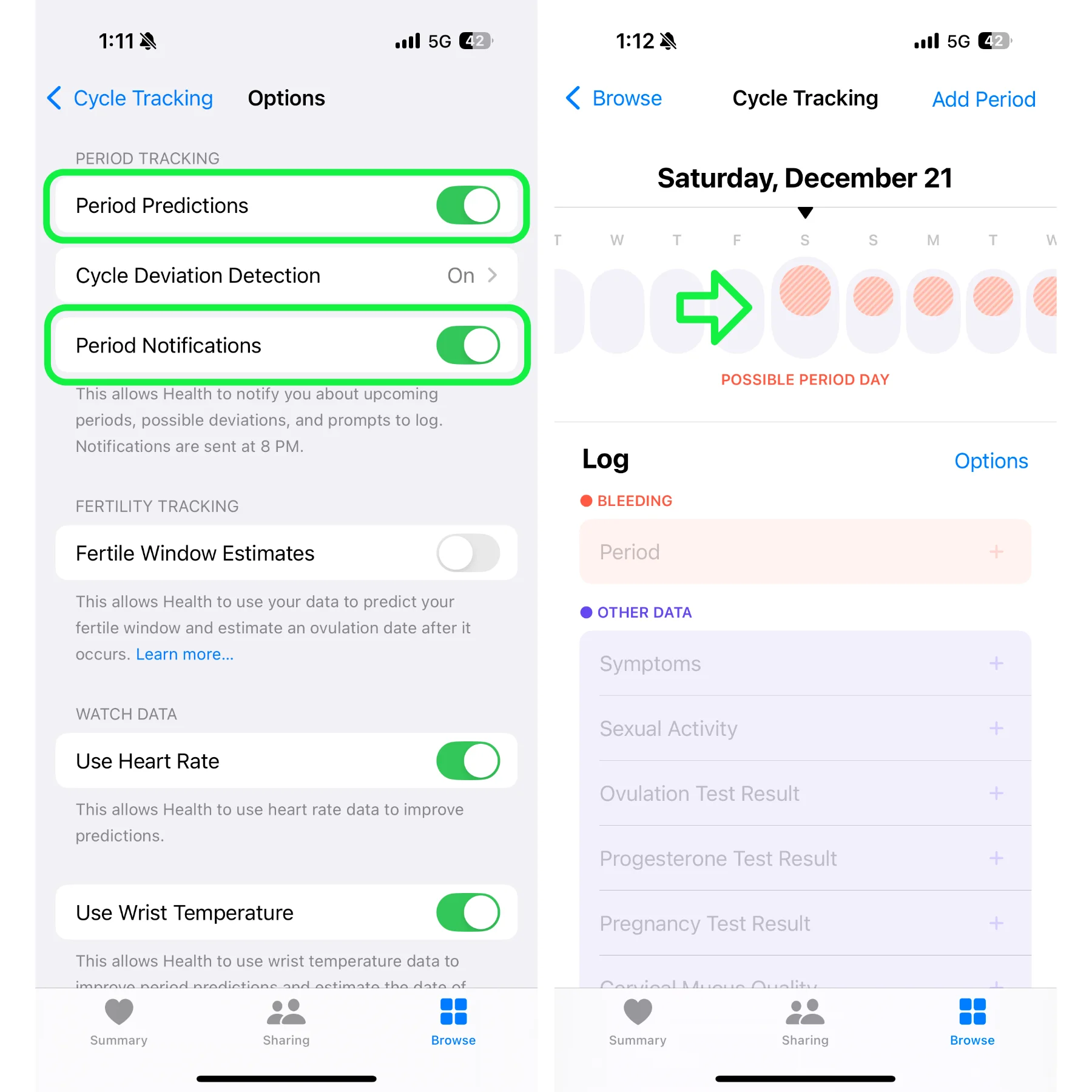 สิ่งสำคัญที่ควรตรวจสอบอยากแรกคือ คุณได้เปิดใช้งานฟีเจอร์การคาดคะเนประจำเดือนแล้วหรือยัง? สำหรับวิธีก็ง่าย ๆ