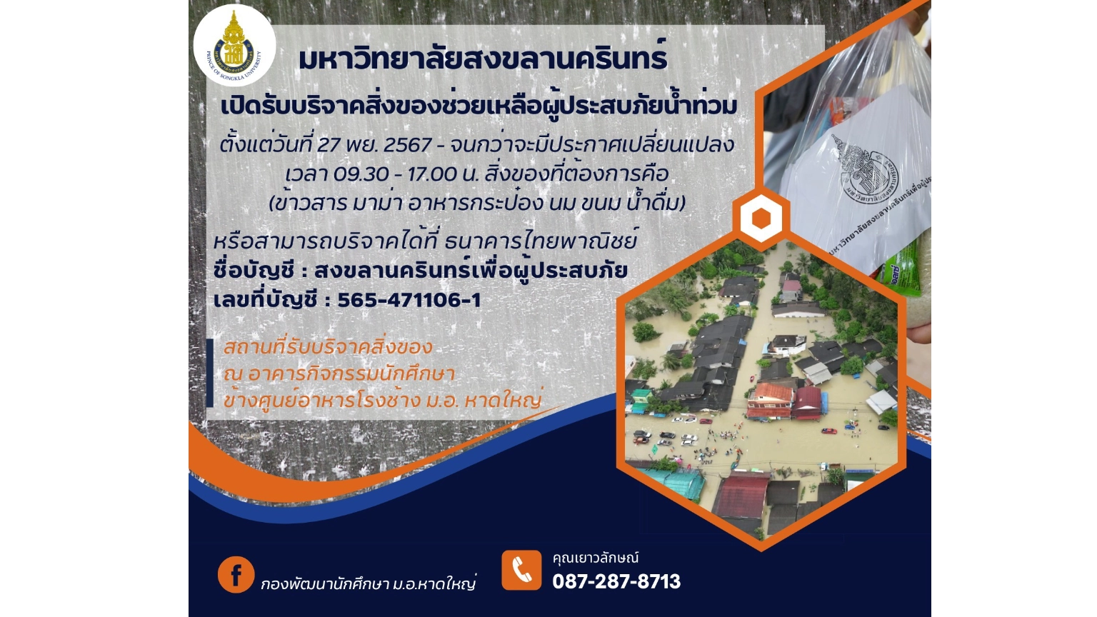 - ชื่อบัญชี : สงขลานครินทร์เพื่อผู้ประสบภัย