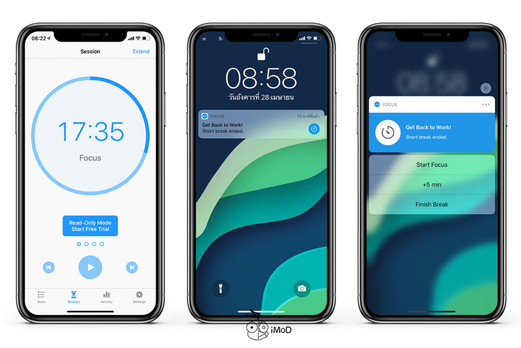 แอป Focus เป็นแอปจับเวลาการทำงานและการพักสลับกันโดยอ้างอิงตามเทคนิค Pomodoro ที่โฟกัสกับการทำงาน 25 นาที และพัก 5 นาที เพื่อให้สมองของเราได้ทำงานอย่างเต็มที่และได้หยุดพักผ่อนในเวลาสั้น ๆ ด้วย ช่วยให้งานเสร็จเร็วขึ้น ผลงานมีประสิทธิภาพมากขึ้นและตัวคนทำงานเองก็รู้สึกได้พักผ่อน ไม่เครียดเกินไปอีกด้วย