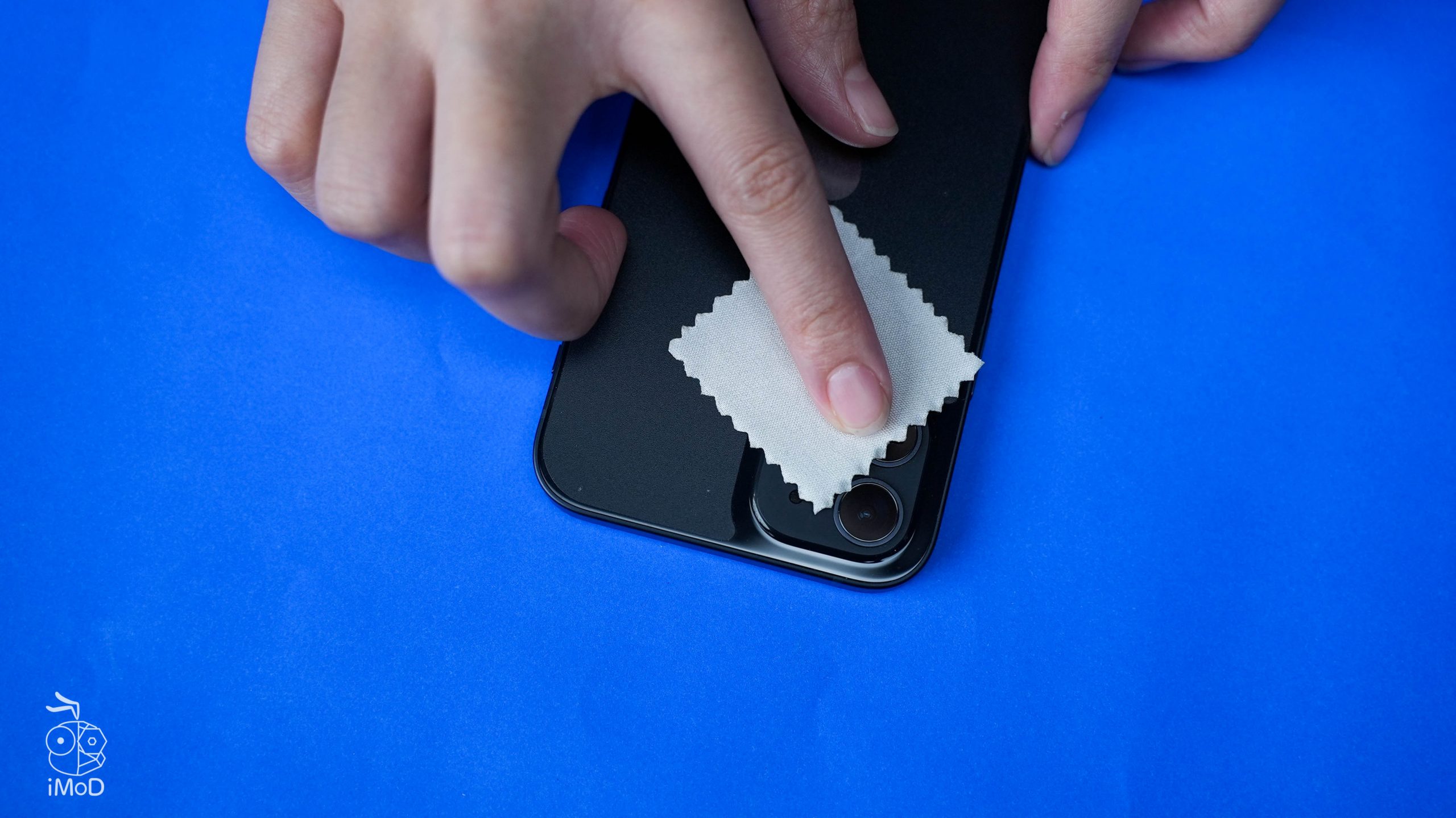 กะระยะเลนส์ให้ตรงกับตัวเลนส์กล้องและแฟลช ค่อยๆ ปล่อยกระจกกันรอยให้เรียบเนียนไปกับตัวเลนส์ แล้วให้ใช้นิ้วรูดเพื่อไล่ฟองอากาศ