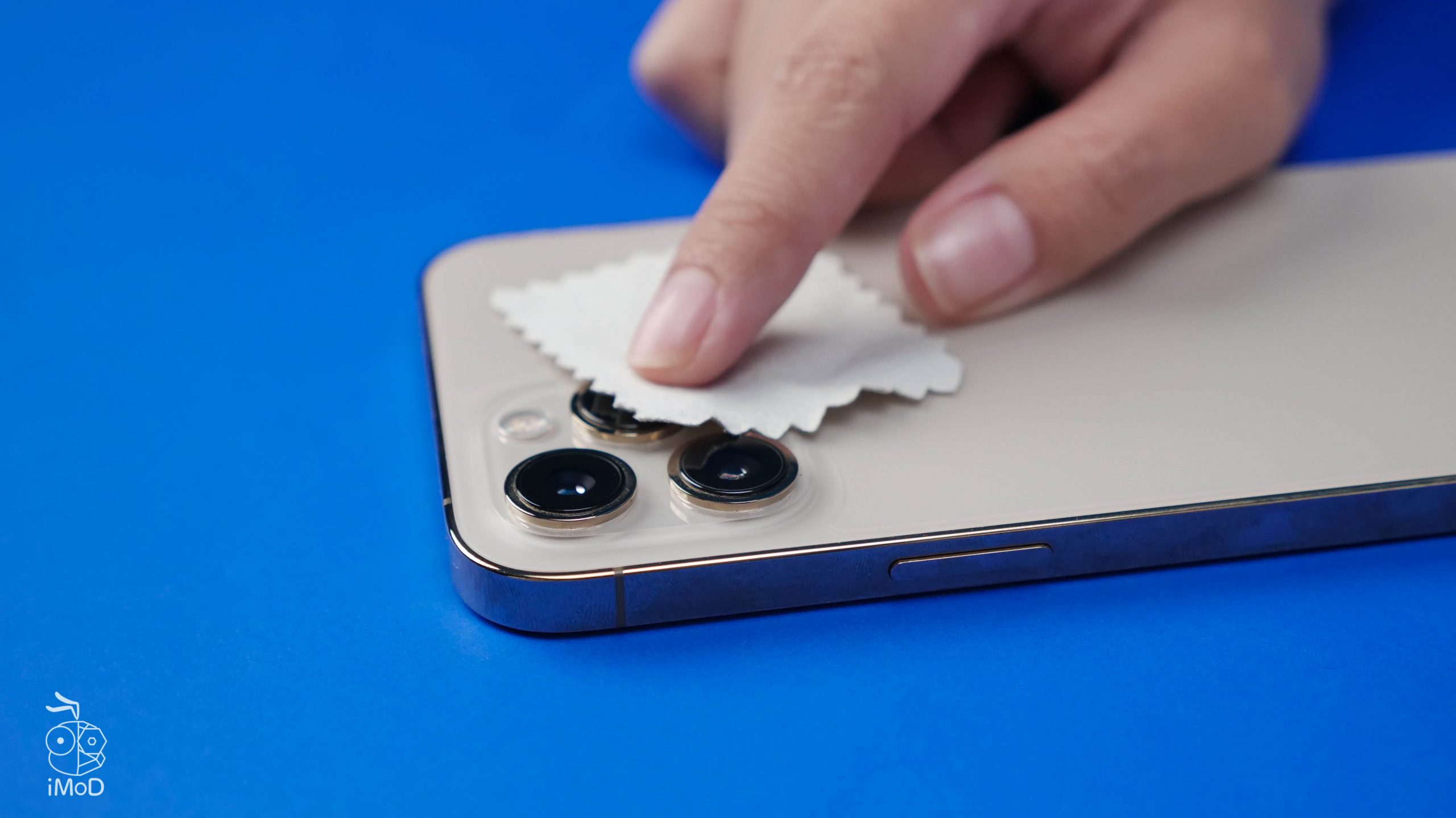 เช็ดเลนส์กล้องด้วยด้วยไมโครไฟเบอร์ให้สะอาด ไม่ให้มีรอยนิ้วมือ จากนั้นเก็บฝุ่นรอบ ๆ ตัวเลนส์กล้องด้วยสติ๊กเกอร์เก็บฝุ่น