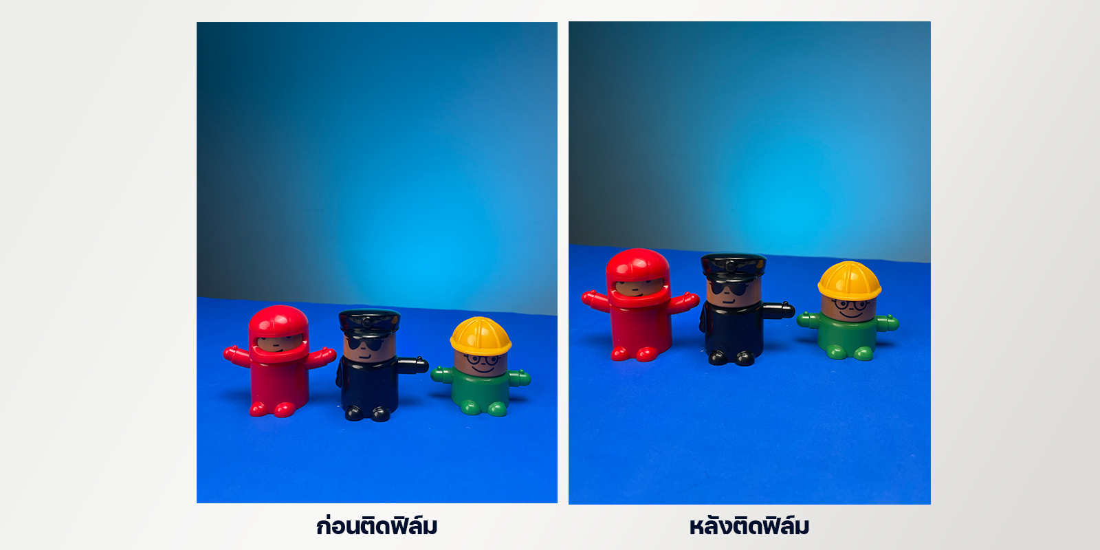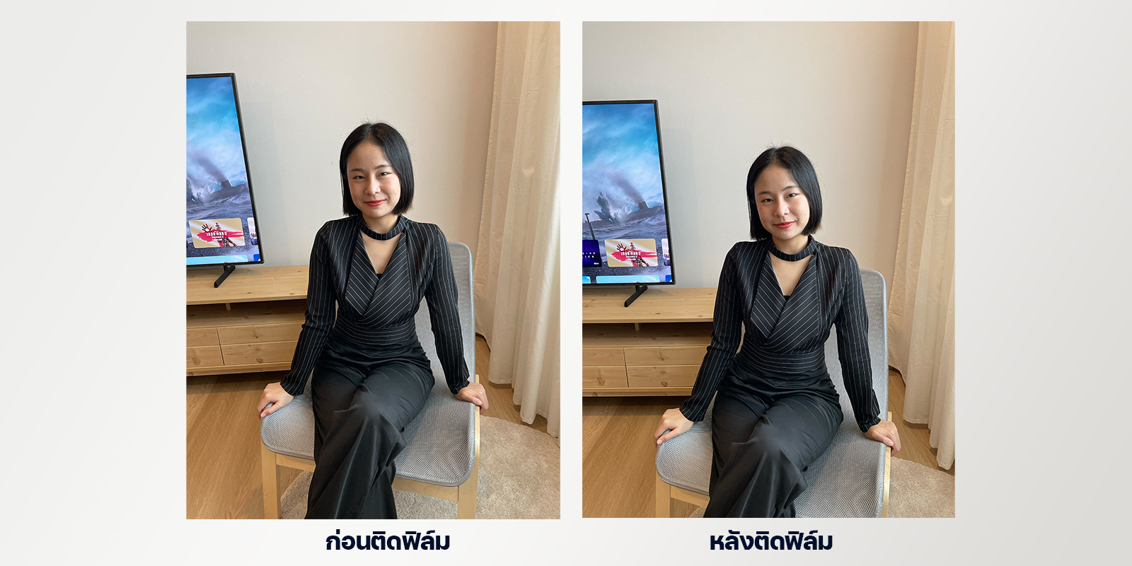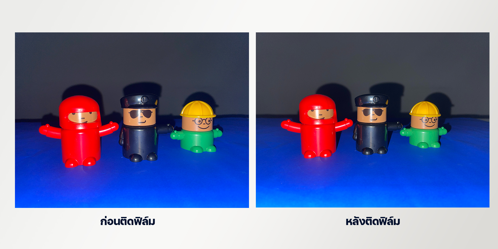 เมื่อทดสอบนำ iPhone 12 ถ่ายด้วยกล้องหลังแบบปกติไม่เปิดแฟลช ก่อนติดฟิล์มและหลังติดฟิล์มภาพออกมาใกล้เคียงกัน สียังคงสดสวยงามไม่ผิดเพี้ยน