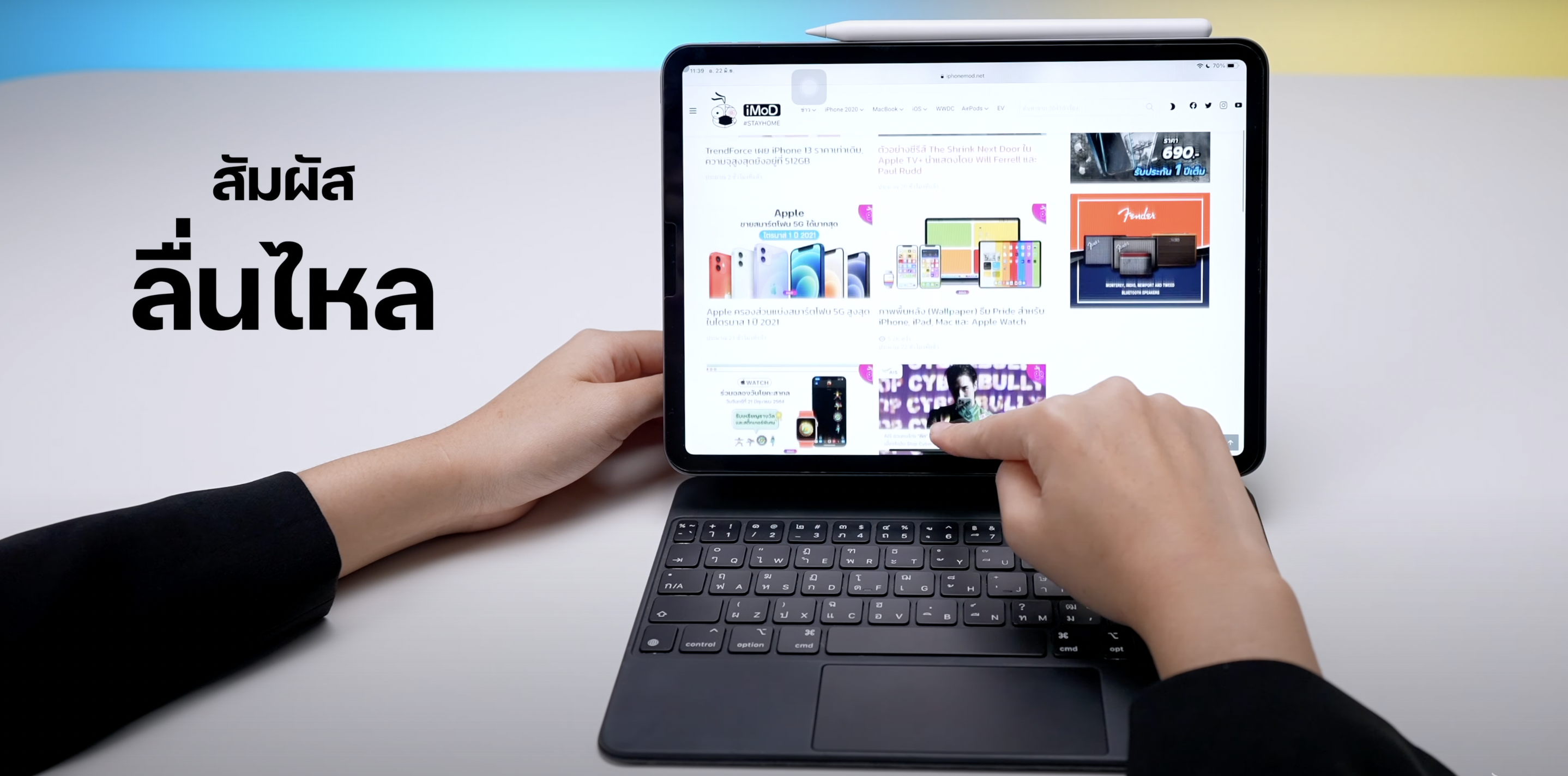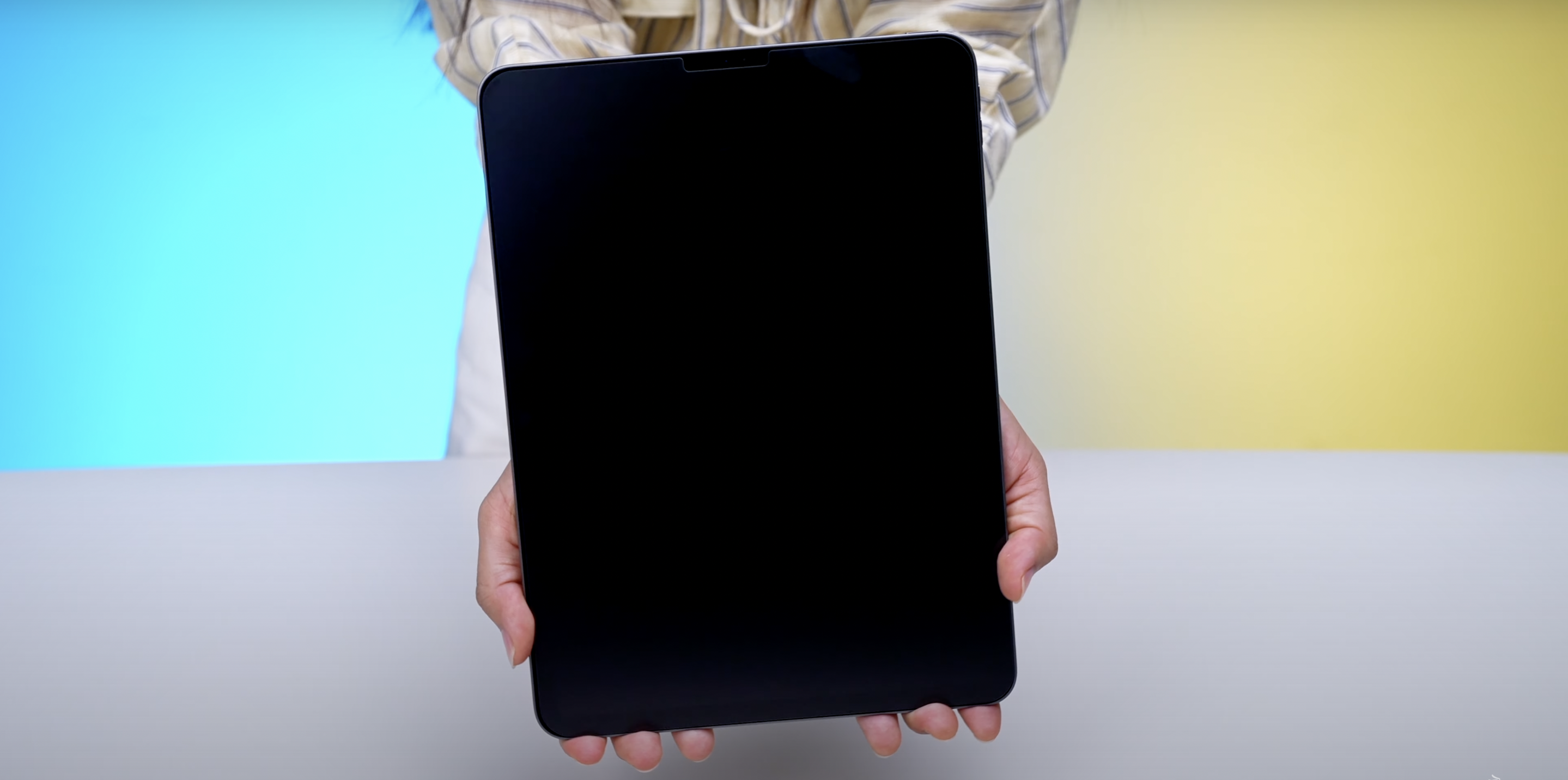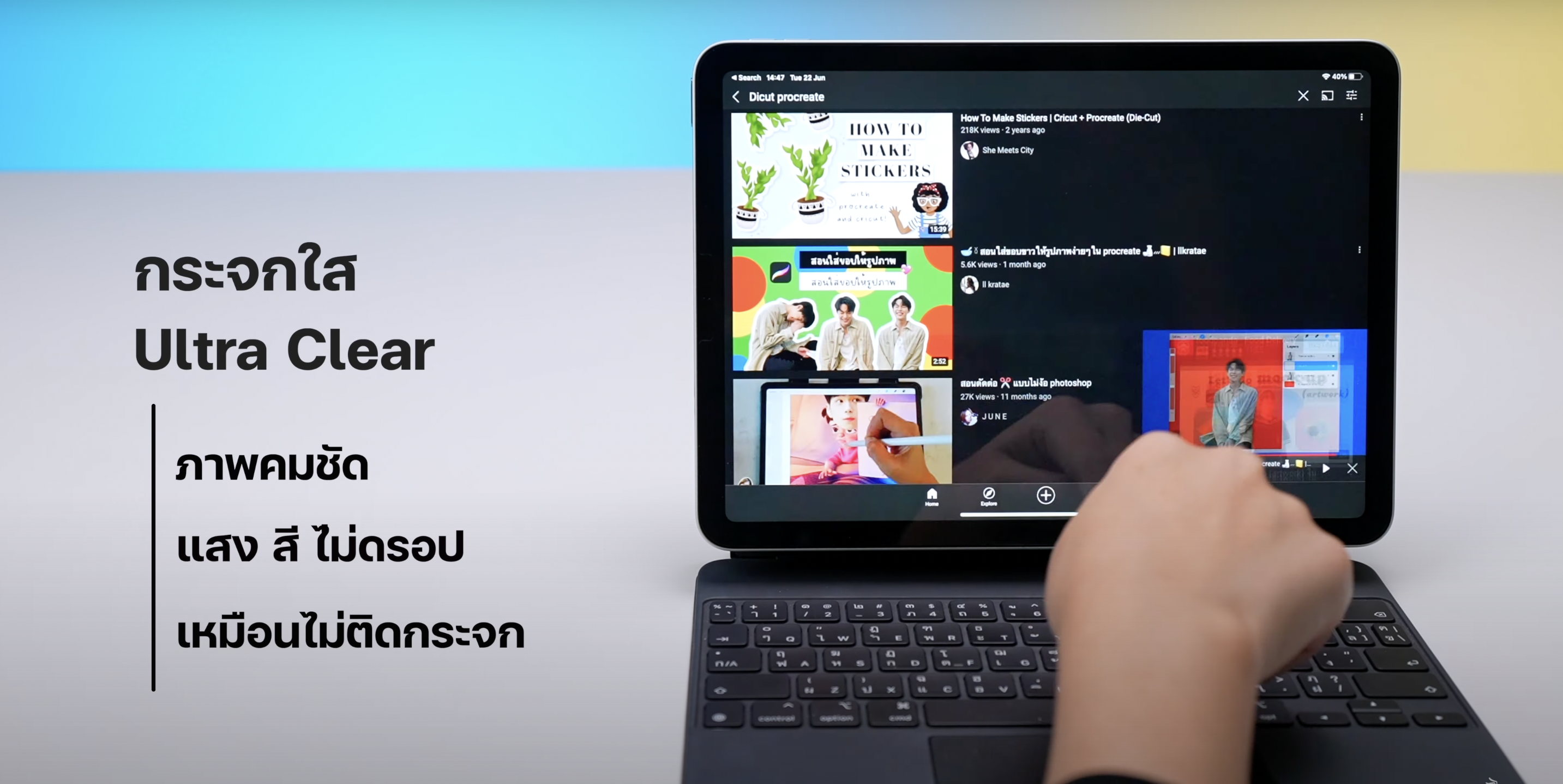 หลังจากที่ติดฟิล์มกระจกแล้ว ตัวฟิล์มออกแบบมาให้พอดีกับหน้า iPad เลย ฟิล์มใสเหมือนไม่ได้ติดเลย เมื่อทดสอบใช้งาน iPad ดูภาพยนต์ที่มีสีสันเยอะ สีสันของจอยังคงสีสดและมีความคมชัด เหมือนกับตอนไม่ได้ติดฟิล์มเลย