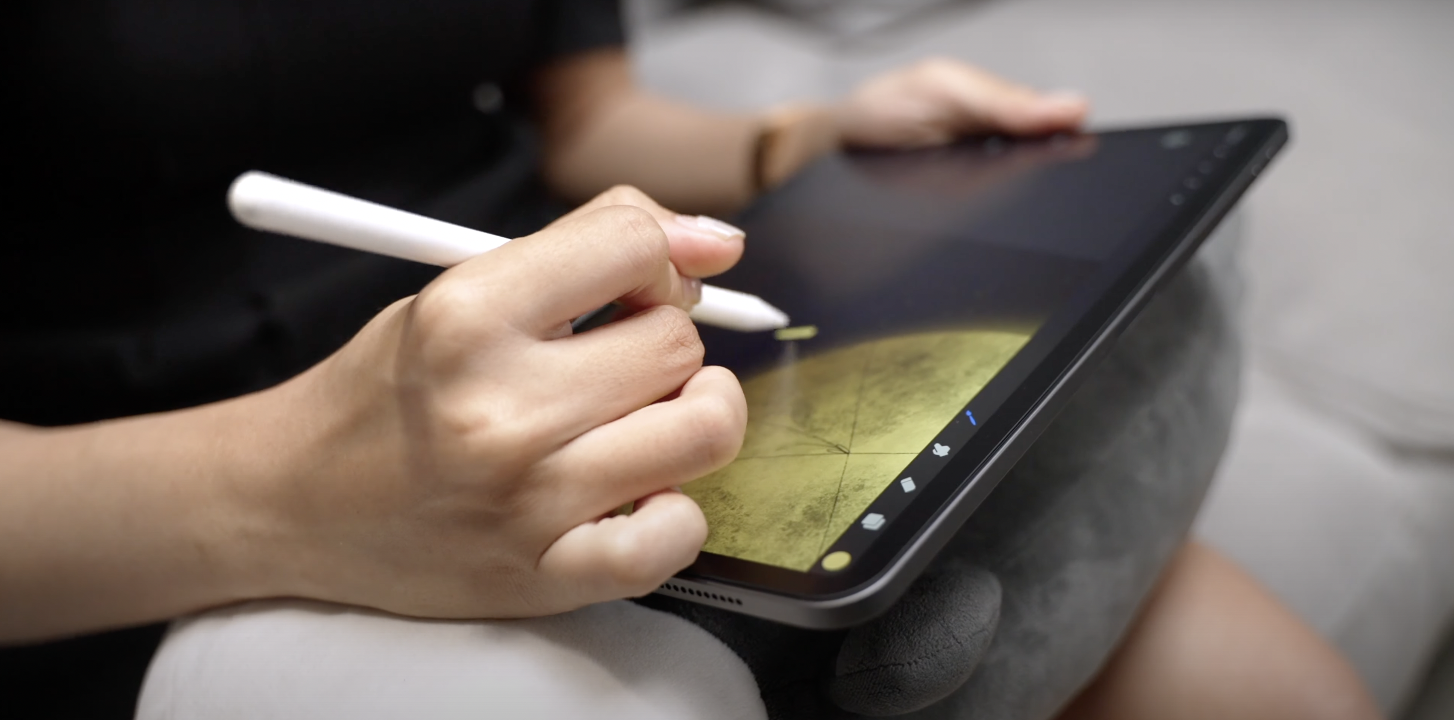 เมื่อทดสอบวาดรูปบน iPad ด้วย Apple Pencil แล้วนั้น รู้สึกเขียนลื่นขึ้นกว่าการไม่ติดฟิล์ม น้ำหนักของเส้นเป็นเป็นตามน้ำหนักมือที่เราเขียน ลายเส้นเขียนไม่หน่วงหรือดีเลย์เลย