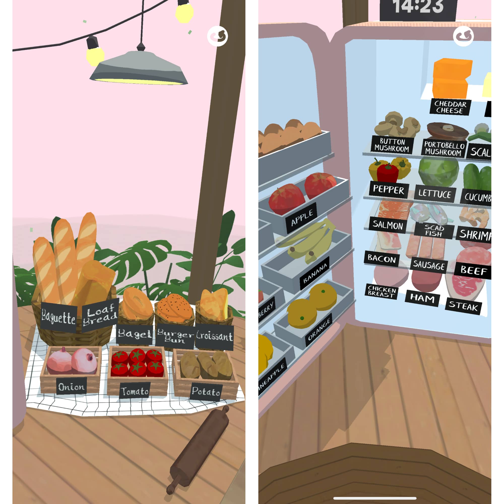 แล้วยังมีส่วนผสมที่จำเป็นต่อการทำอาหารให้เราเลือก เหมือนเราได้เป็นเชฟจริง ๆ เลย