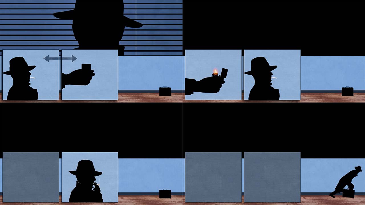 ภาพเนื้อเรื่องเดิมก่อนสลับฉาก: ตัวสายลับจะวิ่งไปเจอตำรวจและถูกจับ
