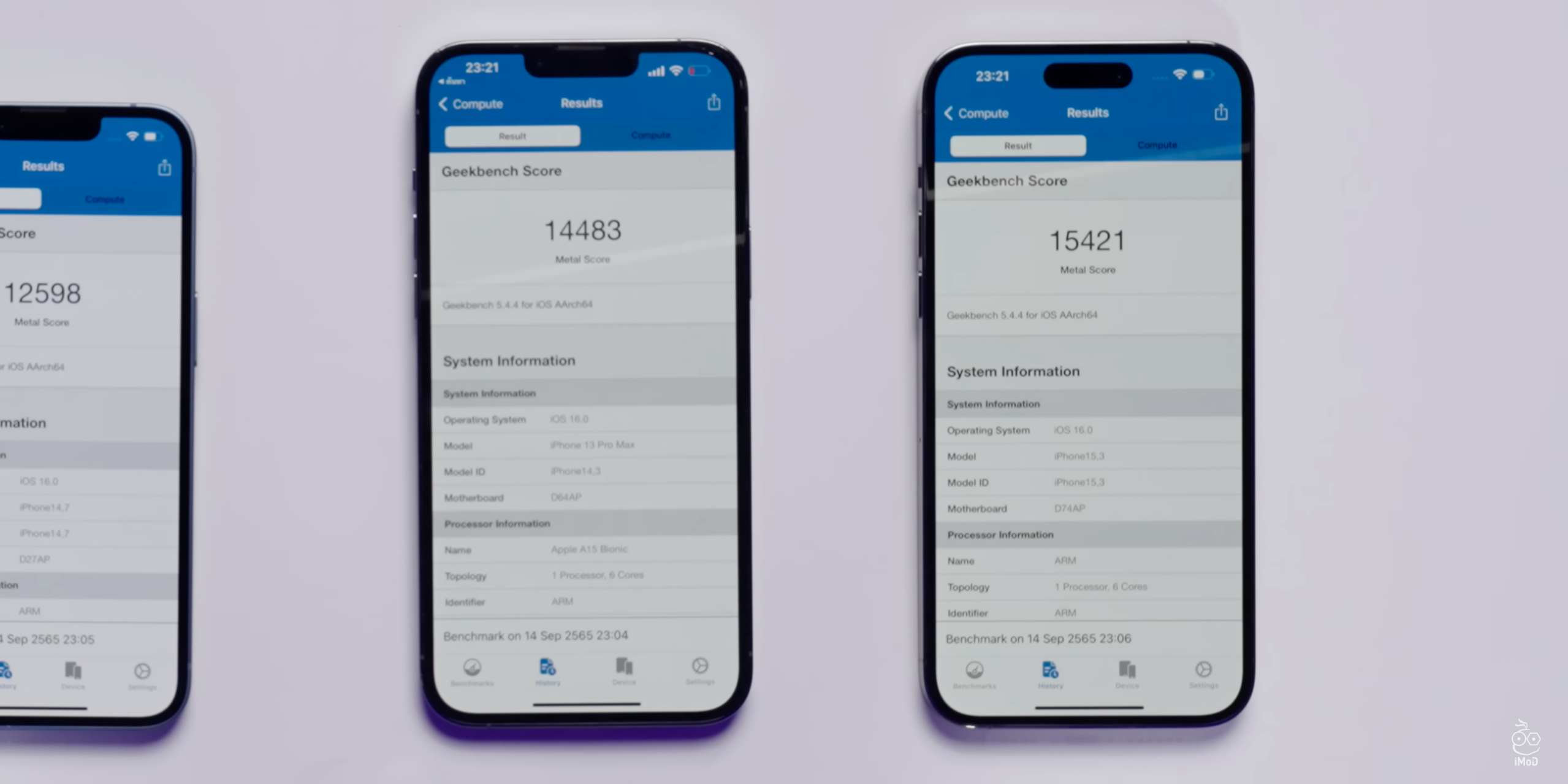 คะแนนการประมวลผล Single-core และ Multi-core ไม่ได้ต่างกันมากเท่าไหร่ สิ่งที่เห็นได้ชัดคือคะแนนส่วนของ GPU เพราะว่า iPhone 14 มี จำนวน core ของ GPU เพิ่มขึ้นมามากกว่า iPhone 13 1 core นั่นเอง