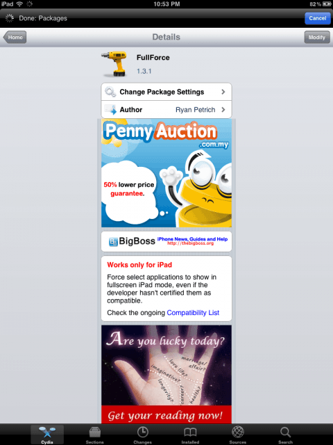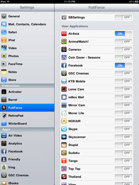 อีกหนึ่งข้อดีที่ได้จากการ Jailbreak iPad (1,2) นั่นก็คือสามารถติดตั้งแอปฯที่พัฒนาจากนักพัฒนาอิสระที่ไม่ได้มาจากทาง Apple เพียงอย่างเดียว ซึ่งแต่ละแอปฯที่พัฒนาออกมาให้ใช้กันนั้นมีทั้งฟรีและที่ต้องจ่ายเป็นเงิน โดยพบว่าหลายๆแอปฯนั้นมีประโยชน์ค่อนข้างมาก ช่วยกำจัดข้อจำกัดของสิ่งที่ Apple กำหนดเอาไว้ ซึ่งวันนี้จะแนะนำแอปฯที่ชื่อว่า FullForce ใช้สำหรับการทำให้แอปฯที่ทำงานบนไอโฟนนั้นสาสามารถแสดงรูปแบบให้เหมาะสมกับไอแพดได้