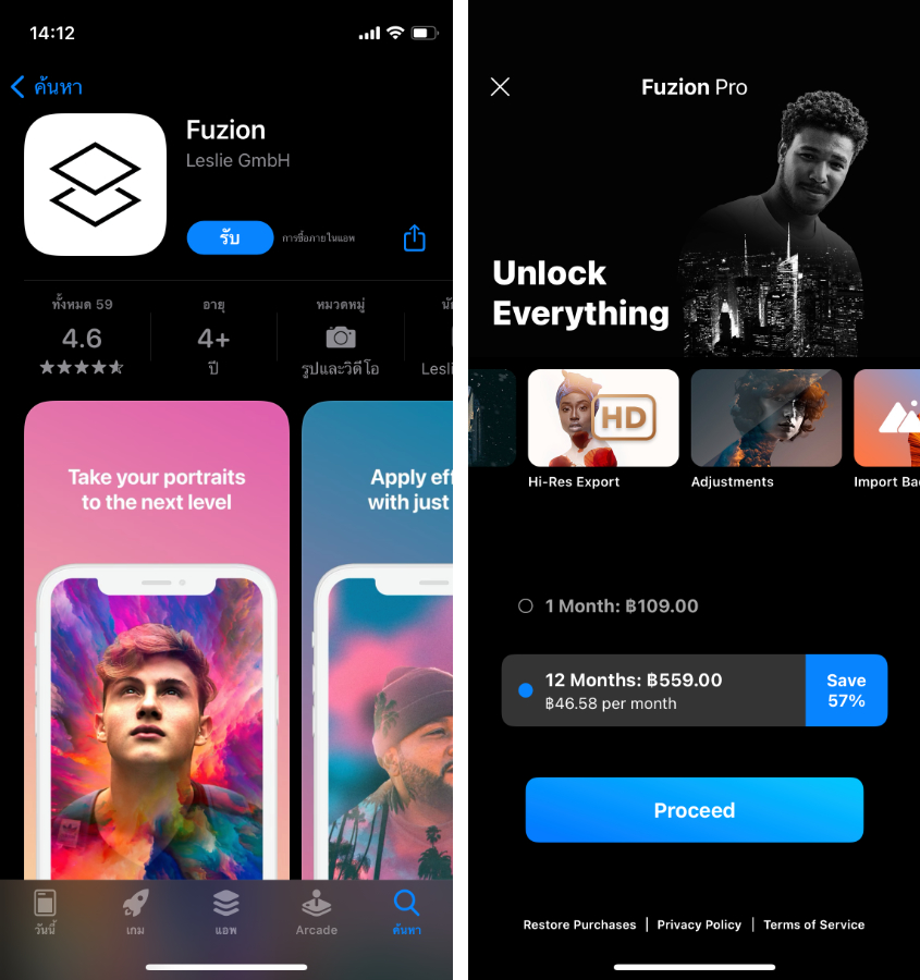 ก่อนอื่นให้เข้าไปโหลดแอปที่ App Store กันก่อน โหลดฟรี หรือจะสมัครสมาชิกแบบ Pro เพื่อปลอดล็อคฟังชันต่าง ๆ ในราคาเดือนละ 109฿ หรือแบบรายปีราคา 599฿