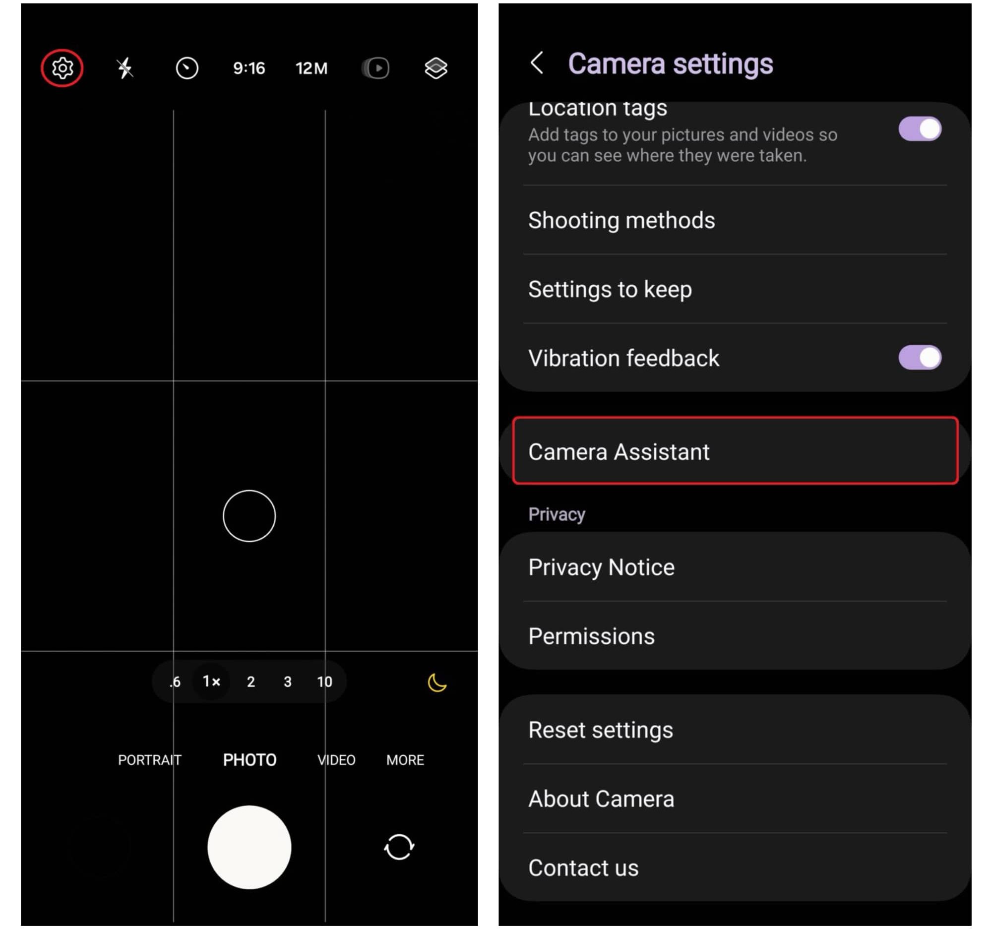 พอติดตั้งแอปเสร็จแล้วให้เราไปที่ “แอปกล้อง” > แตะ “การตั้งค่า” > แตะ “Camera Assistant” แล้วเริ่มใช้งานฟีเจอร์นี้เพื่อช่วยให้การถ่ายภาพง่ายขึ้นได้เลยทันที
