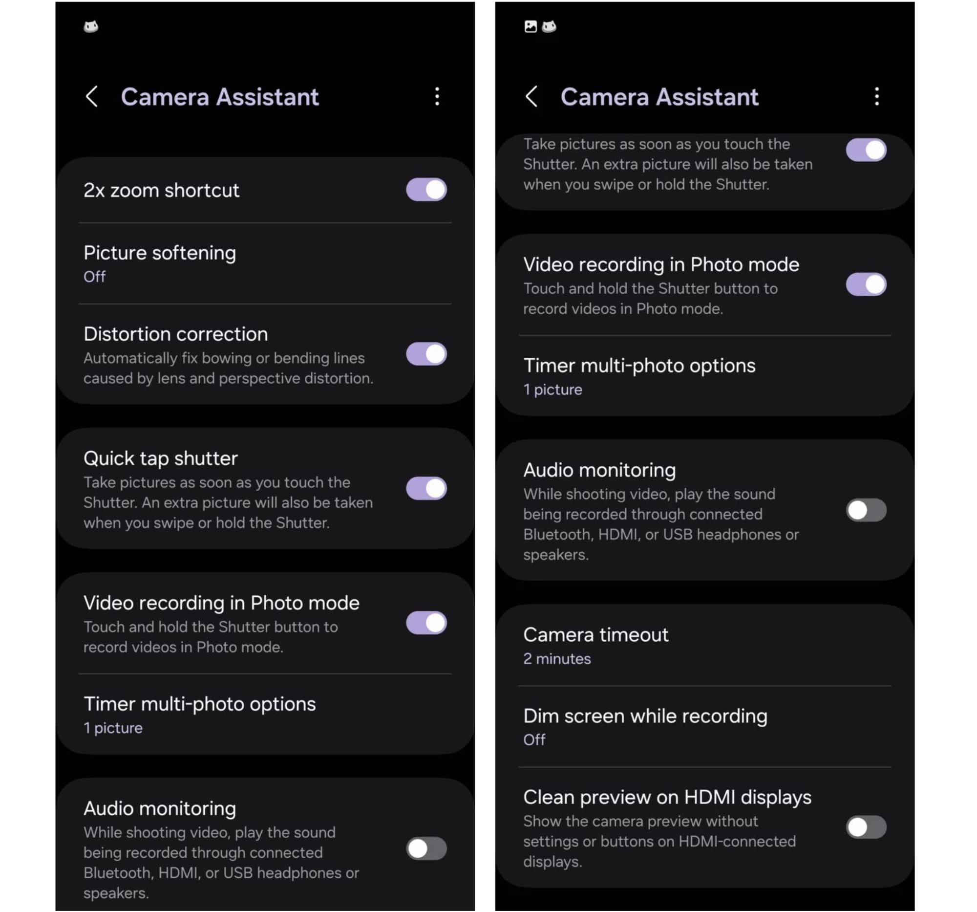 Samsung Camera Assistant เป็นแอปพลิเคชันที่ช่วยให้ผู้ใช้สามารถปรับแต่งการทำงานของกล้องบนมือถือ ได้ละเอียดมากขึ้น โดยที่แอปนี้เปิดตัวครั้งแรกพร้อมกับ Galaxy S22 Series บน One UI 5.0 และต่อมาได้ขยายการรองรับไปยังรุ่นเรือธงรุ่นเก่า ๆ เช่น Galaxy S21