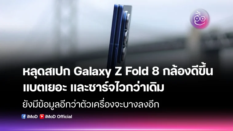 รายงานสเปกของ Galaxy Z Fold 8 หลุดออกมา โดยคาดว่าจะมาพร้อมหน้าจอพับที่ดีกว่าเดิม กล้องหลังปรับปรุงใหม่ แบตเตอรี่ความจุสูงขึ้น และรองรับชาร์จเร็วกว่าเดิม