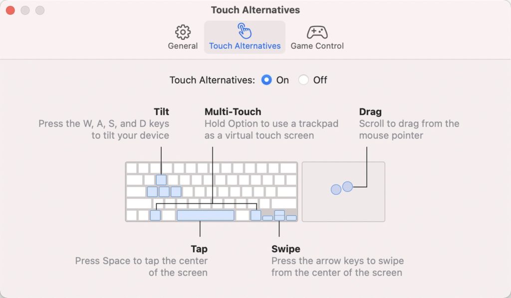 นอกจากนี้ใน macOS 11.3 เวอร์ชัน Beta ยังมาพร้อมฟีเจอร์ Touch Alternative สำหรับการตั้งค่าให้คีย์บอร์ดควบคุมหรือทำงานได้ในรูปแบบต่าง ๆ เช่น การแตะ การปัด การลาก เป็นต้น ซึ่งการตั้งค่านี้จะช่วยให้ผู้ใช้ควบคุมแอปจาก iPhone และ iPad บน Mac ได้ง่ายมากขึ้น