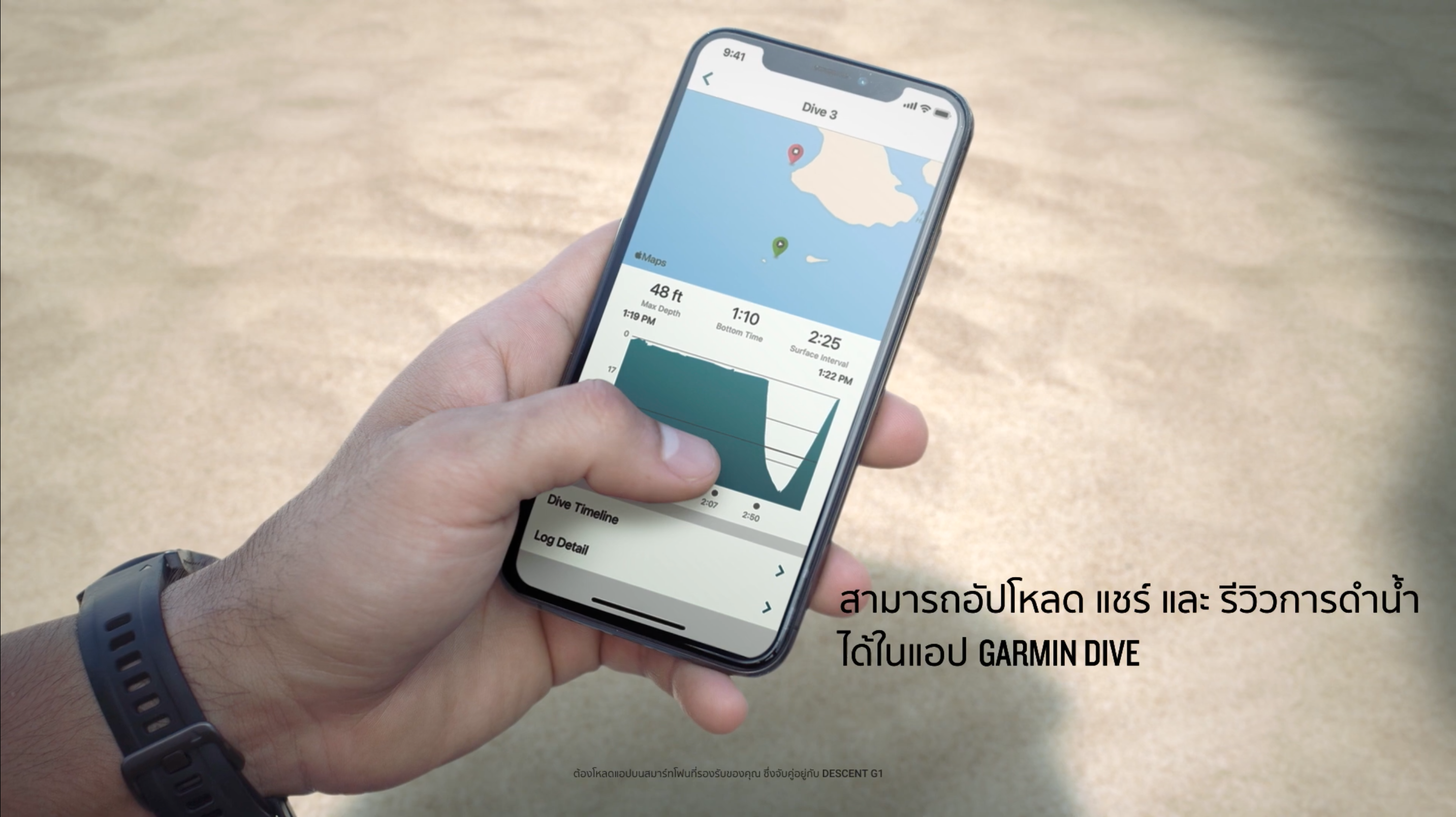 อำนวยความสะดวกให้นักดำน้ำกลับมาดูข้อมูลได้อย่างละเอียด มีครบทั้งความลึกสูงสุดและระยะเวลาที่ใช้ในระดับความลึกนั้น จึงวิเคราะห์ผลงานของตนเองได้เต็มที่ นอกจากนี้ผู้ใช้งานยังสามารถใช้ Garmin Dive™ ในการตั้งค่า DESCENT G1 ได้อย่างครบถ้วน ตลอดจนสามารถวางแผนทริปดำน้ำครั้งต่อไปจากการดูข้อมูลแหล่งดำน้ำยอดนิยมจากผู้ใช้รายอื่นอีกด้วย