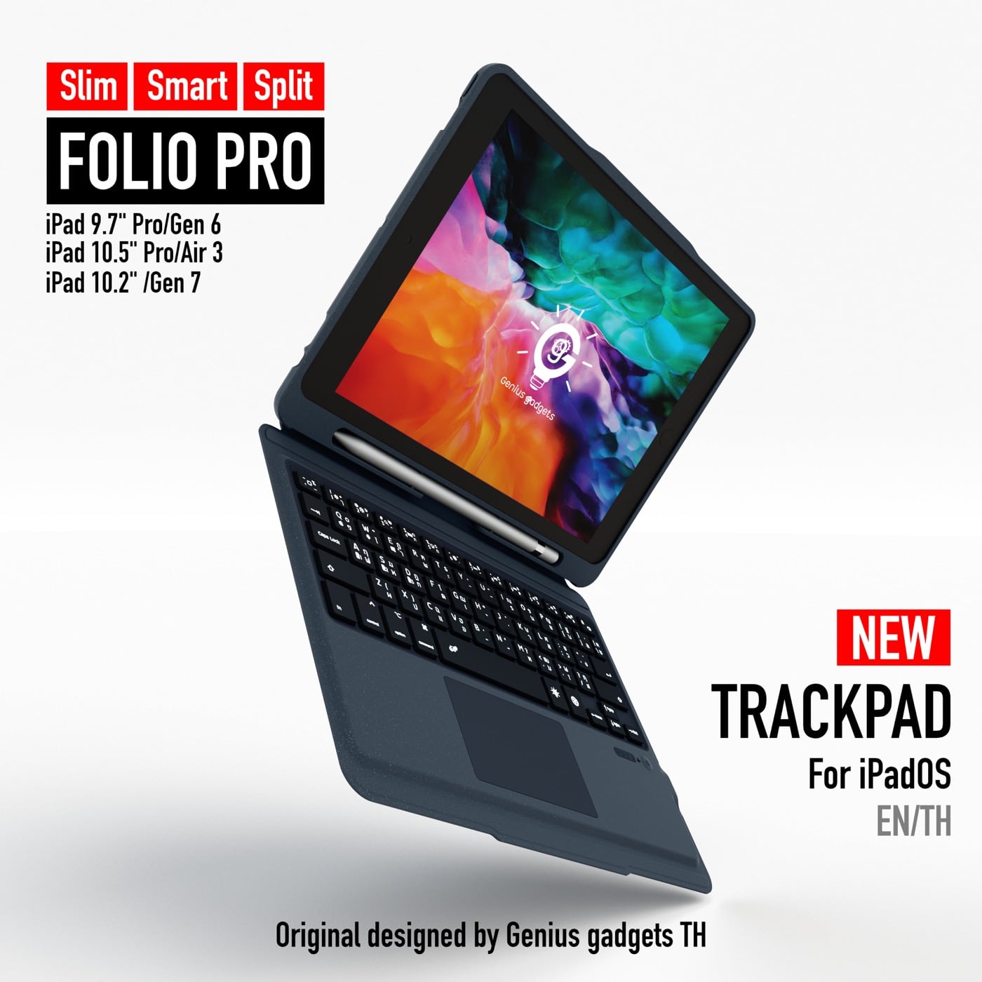 รีวิวเคส Genius Keyboard Case Folio Pro เพื่อ iPad 7, Air 3 และ Pro 10.5 นิ้ว เคสที่คุ้มที่สุดในยุคนี้ ได้ทั้งเคส, ที่เก็บ Apple Pencil, คีย์บอร์ดพร้อมไฟ LED Backlit แบบ RGB 7 สี และมี Touchpad ให้ด้วย