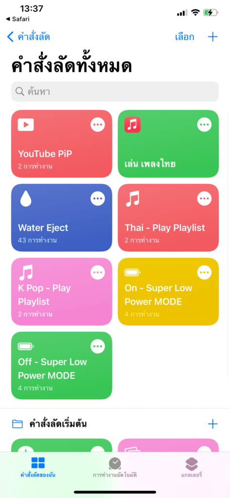 ใครเปิดเมนูนี้ไม่ได้ต้องหาคำสั่งลัดมาติดตั้งและเปิดใช้งานคำสั่งลัดก่อนอย่างน้อย 1 ครั้ง ในแอพคำสั่งในแอปคำสั่งลัด