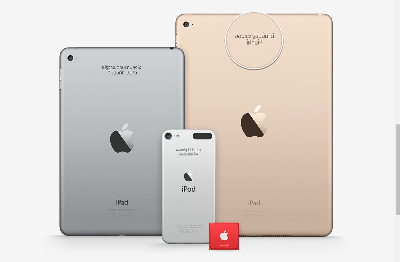 แต่ถ้าใครสายเปย์และรู้ว่าเขาอยากได้ iPhone 7 Plus, iPad Pro, Apple Watch, หรือ MacBook Pro with Touch Bar อันนี้ก็จัดได้เลยตามกำลังศรัทธา ถูกใจผู้ให้ประทับใจผู้รับแน่นอน แถมสินค้าที่สั่งบน Apple Online Store ยังห่อของขวัญฟรีพร้อมการ์ด