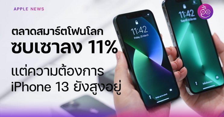 Canalys รายงานยอดขายสมาร์ตโฟนทั่วโลกลดลง 11% ในไตรมาส 1 ปี 2022 ผลพวงมาจากหลายสถานการณ์ ส่วน iPhone 13 ยังมีความต้องการมากอยู่