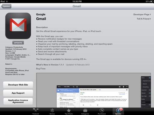 มีอัปเดตใหม่สำหรับผู้ใช้งาน Gmail แอปฯบน iDevice ซึ่งเวอร์ชันล่าสุดที่ปล่อยออกมาคือ Gmail 1.1.1 ที่มีการเปลี่ยนแปลง โดยจุดหลักๆของการเปลี่ยนแปลงครั้งนี้คือการเพิ่มความสามารถให้ผู้ส่งสามารถเลือกอีเมลที่จะใช้ส่งได้เหมือนกันที่เราตั้งค่าไว้ในเซิร์ฟเวอร์ของ Gmail นั่นเอง