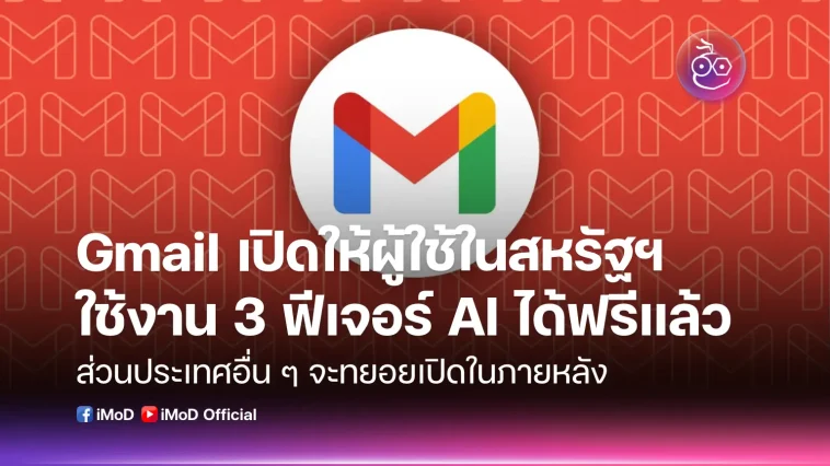 Google ประกาศให้ผู้ใช้ Gmail บัญชีส่วนบุคคลในสหรัฐฯ ใช้งานฟีเจอร์ AI สามรายการได้ฟรี โดยไม่ต้องสมัครแพ็กเกจ Google AI Pro หรือ Ultra เหมือนเมื่อก่อน ส่วนประเทศอื่นๆ จะเปิดให้ใช้งานตามมาภายหลัง