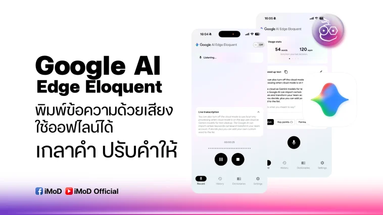 แอป Google AI Edge Eloquent เปิดให้ดาวน์โหลดใช้งานฟรีบน iOS และมีการระบุว่าอาจมีเวอร์ชัน Android ตามมาในอนาคต