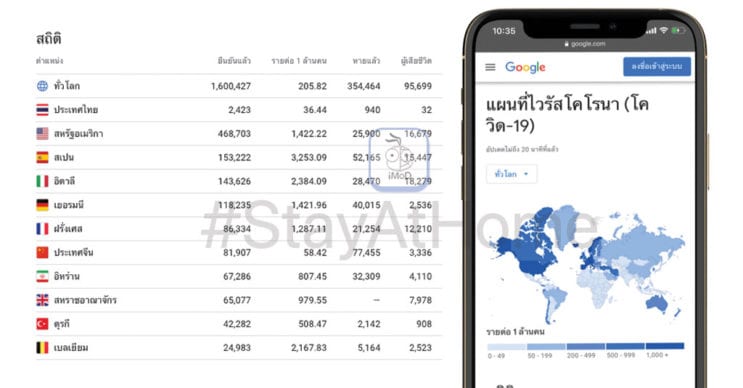 Google เปิดเว็บแผนที่โควิด-19 ให้ผู้ใช้สามารถตรวจสอบจำนวนการติดเชื้อ การรักษา และภาพรวมการแพร่ระบาดในแต่ละประเทศได้