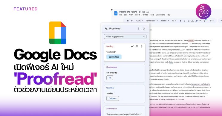 Google Docs เปิดฟีเจอร์ AI ใหม่ ‘Proofread’ ตัวช่วยงานเขียนสุดเพอร์เฟกต์