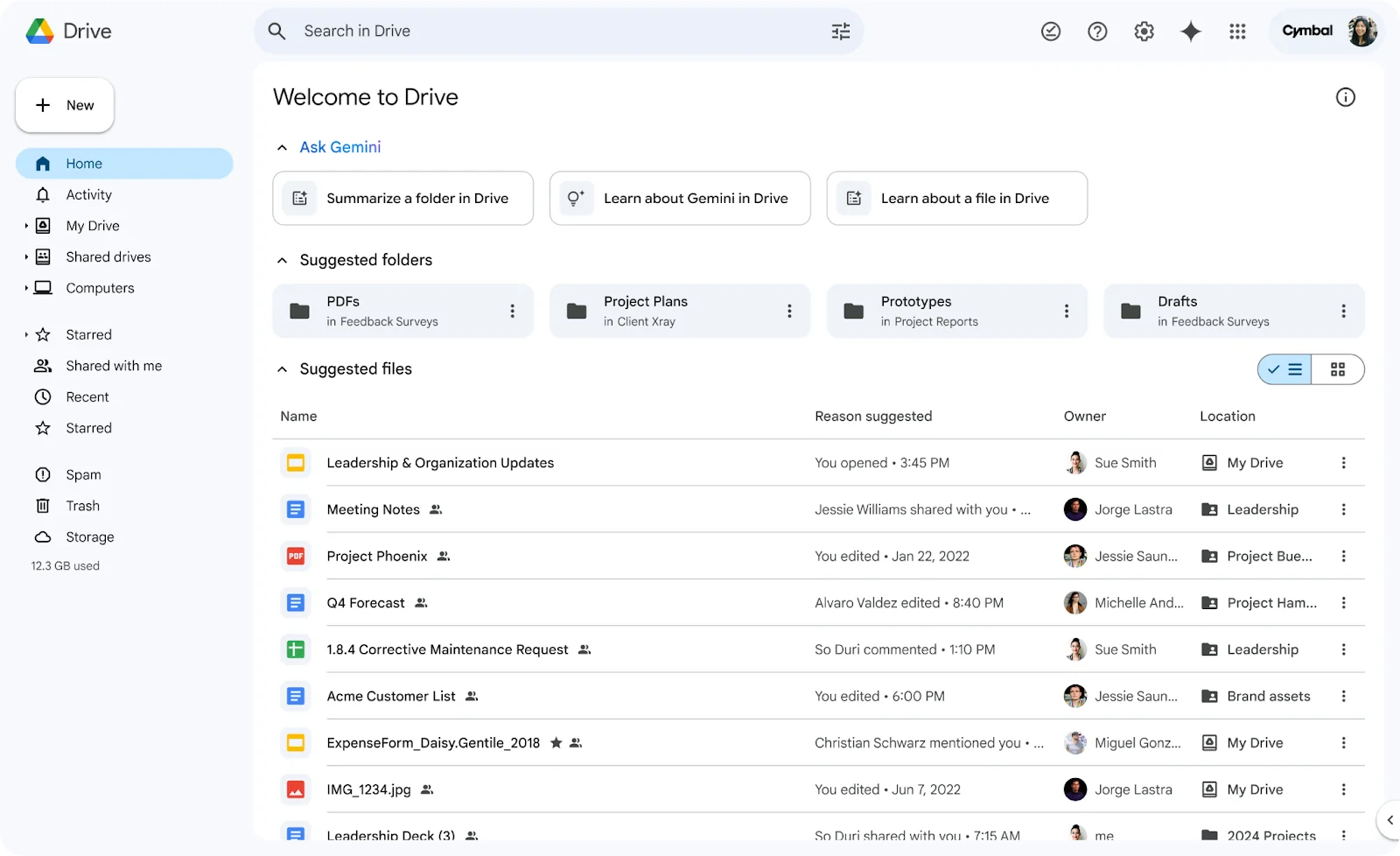 ตลอดปีที่ผ่านมา Gemini ค่อยๆ เข้ามามีบทบาทในแอปต่างๆ ของ Google ทั้งช่วยผู้ใช้งานในการร่างอีเมล สรุปเนื้อหา และวิเคราะห์ข้อมูล ใน Google Drive นั้น Gemini ได้เพิ่มฟีเจอร์ที่สามารถสรุปเอกสาร ทั้งแบบไฟล์เดียวและหลายไฟล์, ดึงข้อมูลสำคัญจากไฟล์, รองรับไฟล์และจัดการกับไฟล์ PDF, และการสนทนาแบบมีบริบทตามโฟลเดอร์ใน Drive เพื่อช่วยให้ผู้ใช้งาน ทำงานได้สะดวกขึ้น