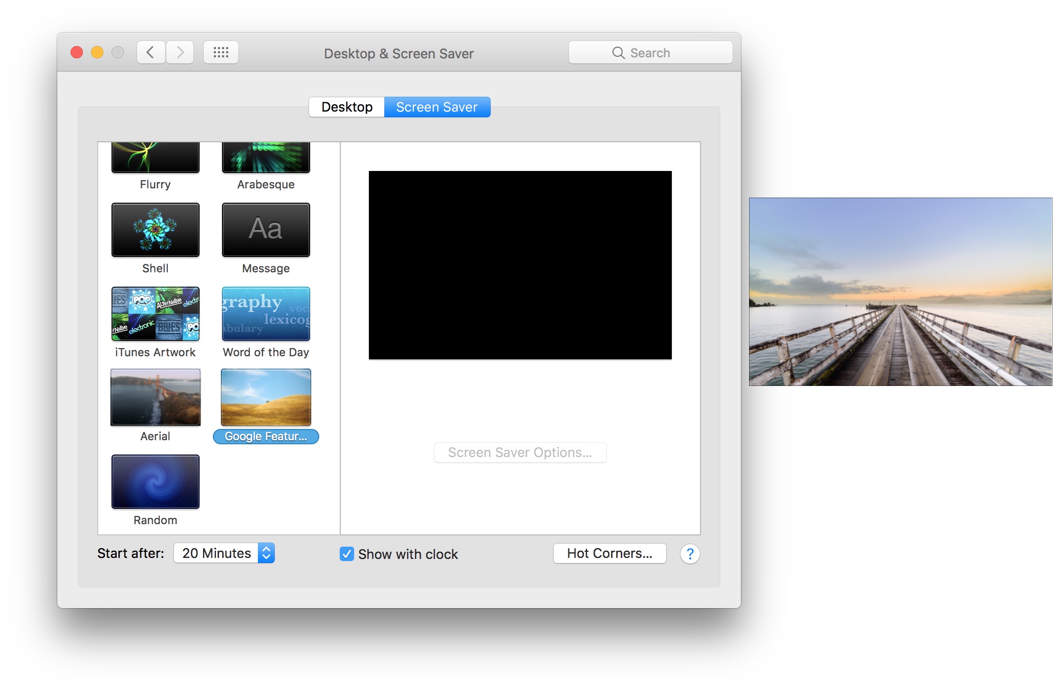 จากนั้นระบบจะพาไปยังหน้าตั้งค่า Screen Saver ใน macOS ให้เลื่อนลงมาด้านล่างแล้วเลือก Google Featur… จากนั้นปิดได้เลย