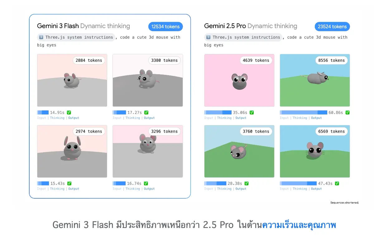 เมื่อวันที่ 17 ธ.ค. 2025, Google ได้เปิดตัวโมเดลใหม่ “Google 3 Flash” ซึ่งผู้ใช้ทุกคนสามารถเข้าถึง และใช้งานได้แล้วตั้งแต่ตอนนี้ ฉลาด ให้คำตอบได้อย่างรวดเร็วขึ้น และเร็วกว่า 2.5 Pro ถึง 3 เท่า ใช้โทเคนในการประมวลผลน้อยกว่า แต่ยังได้ประสิทธิภาพคำตอบที่ใกล้เคียงกัน