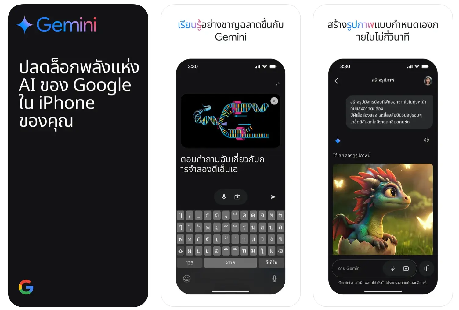 Google Gemini สำหรับ iPhone โหลดได้ที่นี่: https://apps.apple.com/th/app/google-gemini/id6477489729?l=th