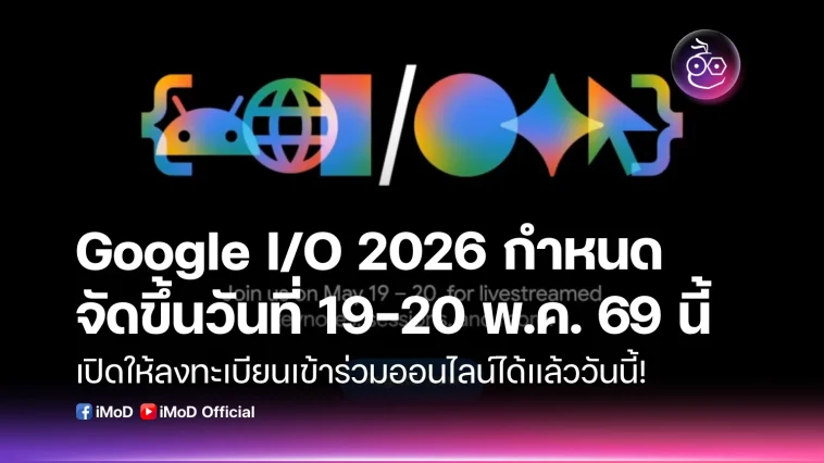 ลงทะเบียนเข้าร่วมออนไลน์ได้แล้วฟรีที่ io.google/2026 โดย Google จะประกาศ Agenda และรายชื่อ Session ให้ครบก่อนวันงาน