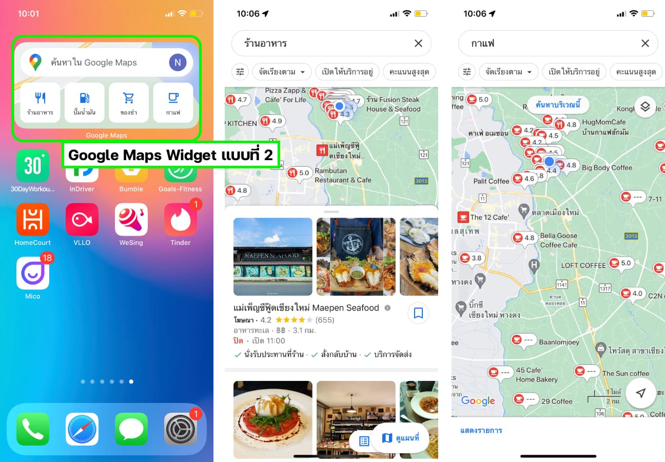 แบบที่ 2 จะมีฟังก์ชันให้ใช้งานมากกว่า สามารถพิมพ์หาชื่อสถานที่จากแถบค้นหาที่อยู่บนวิดเจ็ตได้เลย
